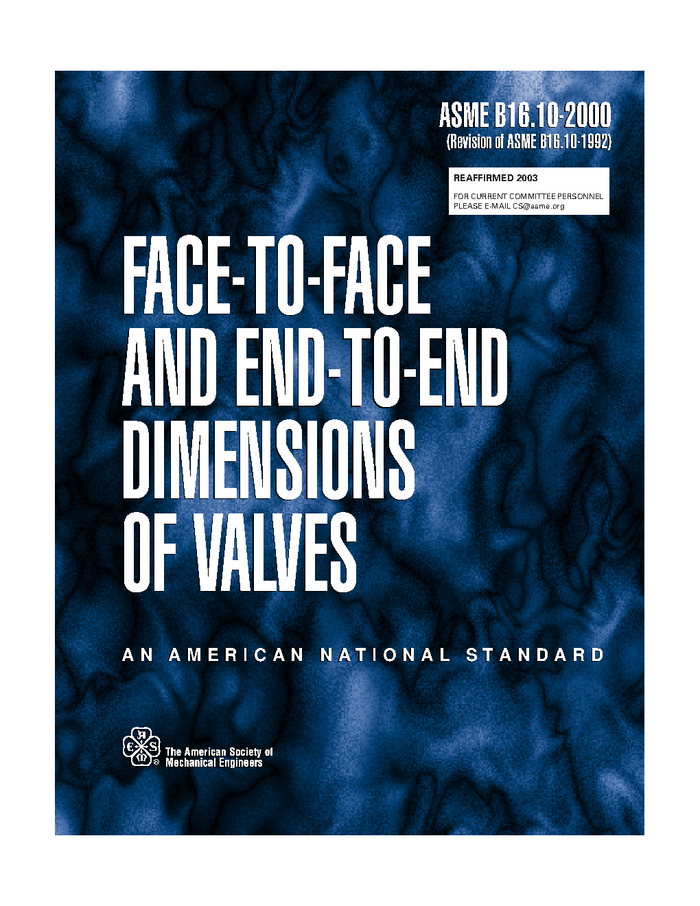 This Standard covers face-to-face and end-to-end dimensions of straightway valves, and center-to-face and center-to-end dimensions of angle valves. Its purpose is to ensure installation interchangeability for valves of a given material, type, size, rating class, and end connection.