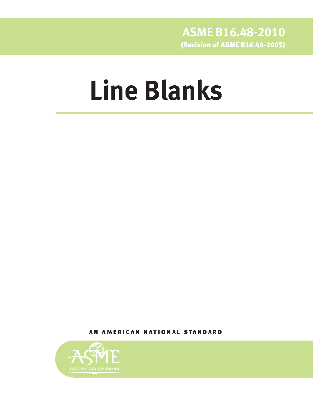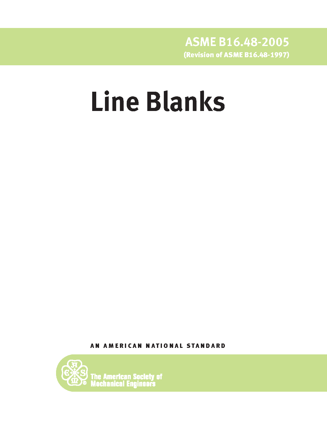 This Standard covers pressure-temperature ratings, materials, dimensions, tolerances, marking, and testing for operational line blanks in sizes NPS 1/2 through NPS 24 for installation between ASME B16.5 flanges in the 150, 300, 600, 900, 1500, and 2500 pressure classes.