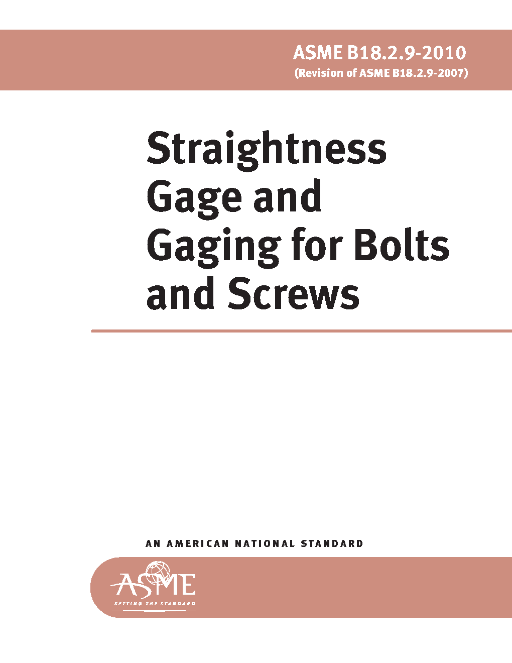 This standard describes a gage and gaging procedure for checking bolt or screw straightness at maximum material condition (MMC).