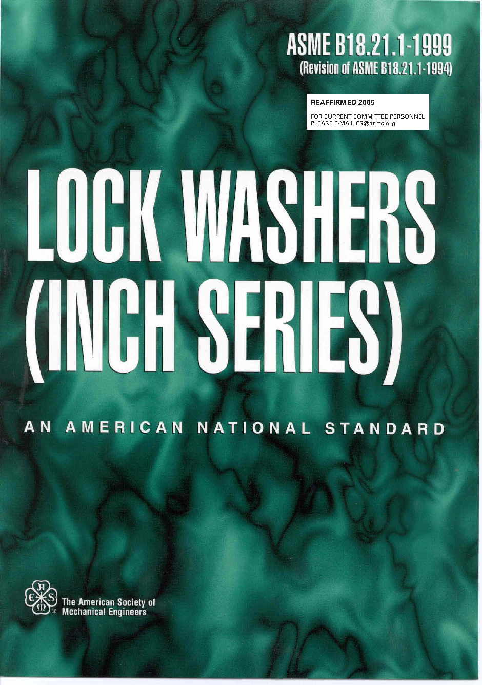 This standard covers the dimensional requirements, physical properties, and related test methods for helical spring-lock washers (0 through 3 inches), tooth-lock washers (2 through 1 ¼ inches), and plain washers (0 through 3 inches). The inclusion of dimensional data in this Standard is not intended to imply that all products described are stock production items. Consumers should consult with suppliers concerning the availability of products.