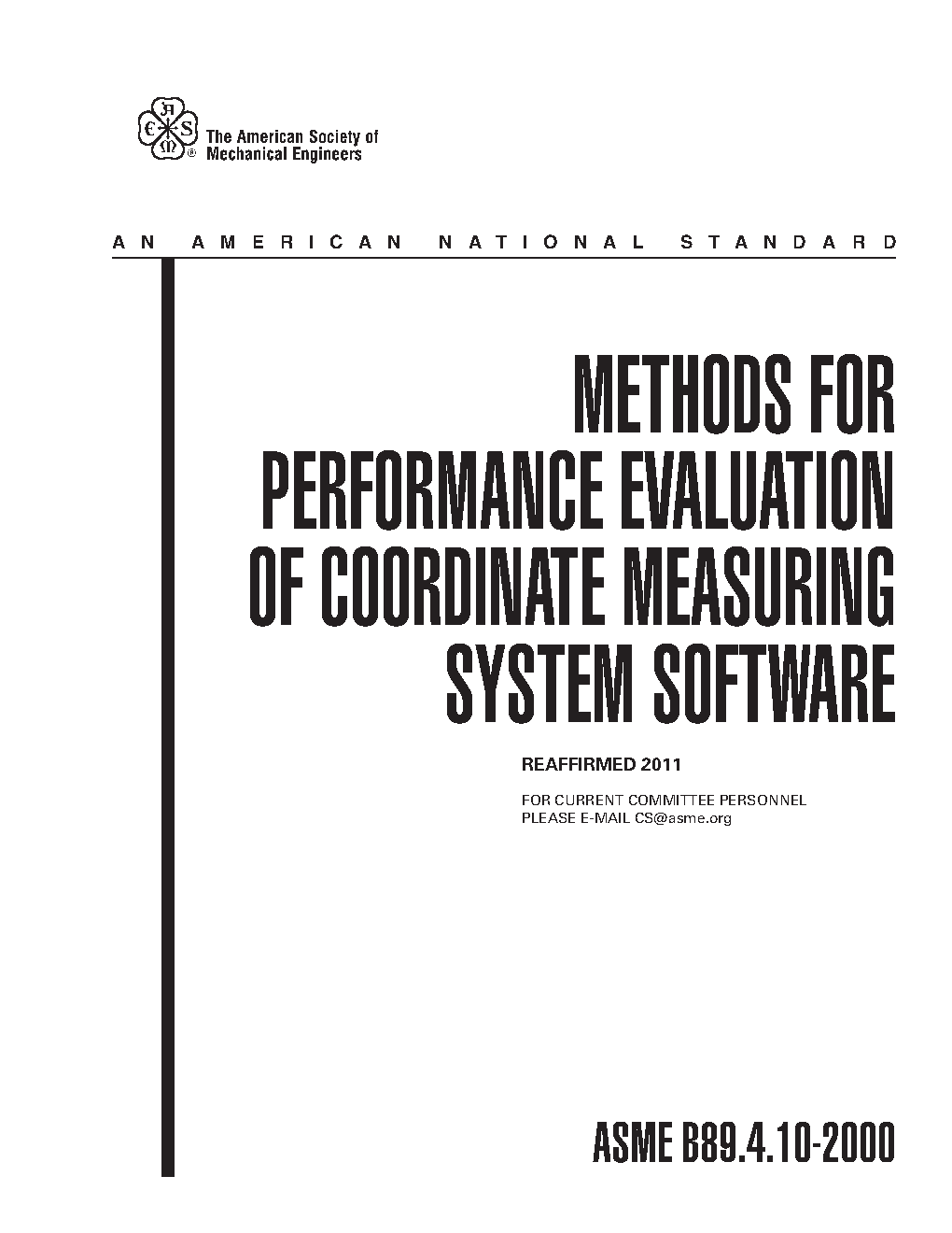 A critical issue in industrial coordinate metrology is the measurement of a work piece to assure compliance with its dimensional requirements. When using a computerized Coordinate Measurement System (CMS), the usual practice is to correlate computer calculated outputs with the dimensional requirements of the work piece. This correlation is performed by various computer routines that process dimensional coordinate data sets consisting of measurement samples of the object being evaluated. The purpose of this document is to provide guidelines for evaluating the quality of solutions generated by CMS software and to define minimal documentation requirements for software providers. This Standard is concerned with testing the behavior of algorithm implementation, not the testing of algorithms themselves. It is not the intent of this document to endorse or rate any computational method or system. Software performance evaluation is useful because it: (a) Allows objective validation of software; (b) Reduces the possibility of error in software application; and (c) Defines a method of comparing CMS software. This document covers the following areas: input data, feature construction, software documentation, performance characterization, and test methodologies.