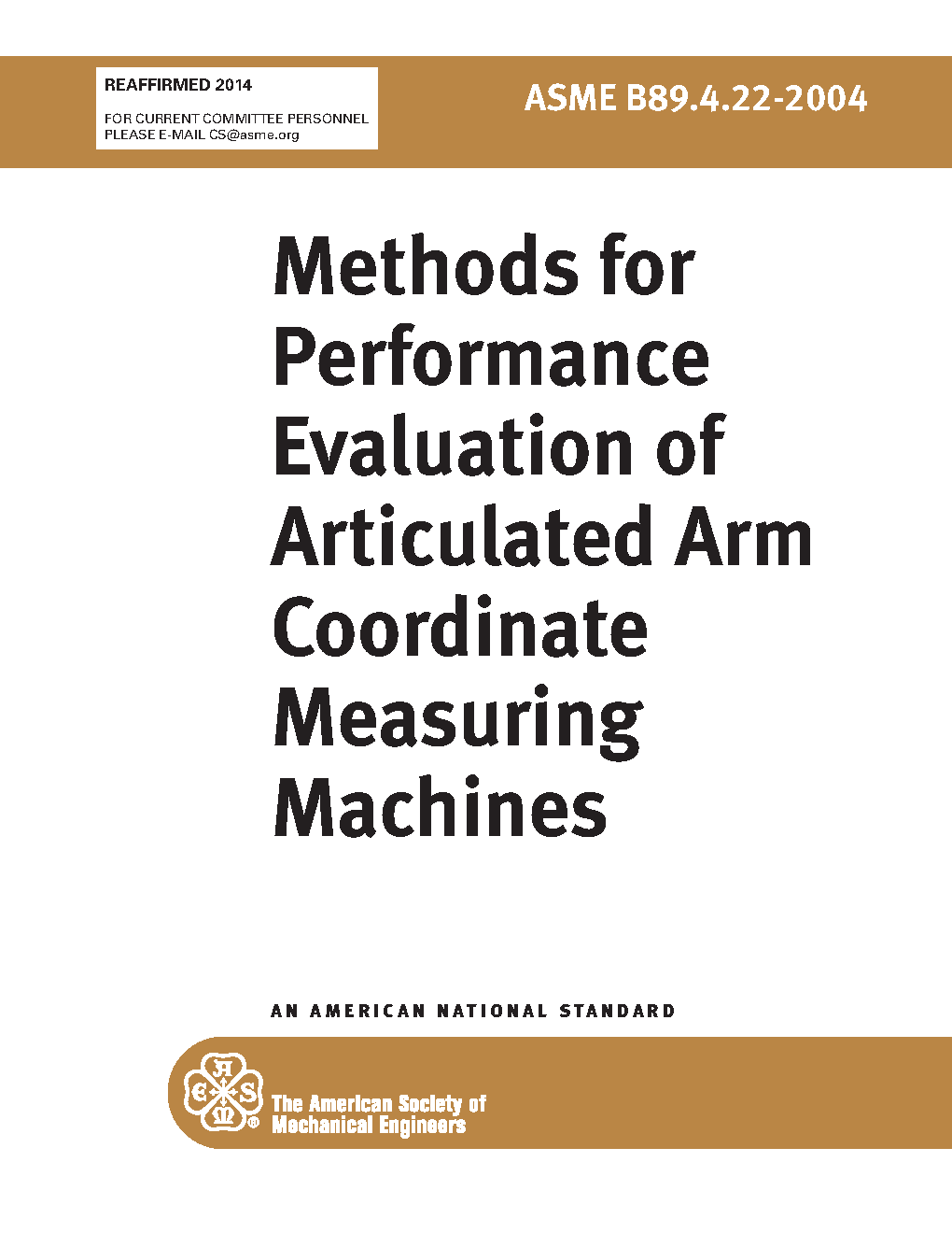 The scope of this Standard pertains to the performance evaluation of Articulated Arm Coordinate Measuring Machines (AACMMs). While any number of rotational joints can be evaluated, the Standard focuses on the more common configurations commercially available today and is limited to seven joints. The Standard addresses purely manual machines, so no motorized axes are addressed in the current document. While the application of this class of measuring machine continues to grow, at this point in time only contact probes are considered and optical noncontact probes are specifically excluded. This Standard establishes requirements and methods for specifying and testing the performance of AACMMs. In addition to clarifying the performance evaluation of AACMMs, this Standard seeks to facilitate performance comparisons among machines by unifying terminology, general machine classification, the treatment of environmental effects, and data analysis. This Standard attempts to define the simplest testing methods capable of yielding adequate results for most AACMMs and it is not intended to replace more complete tests that may be suitable for special applications.