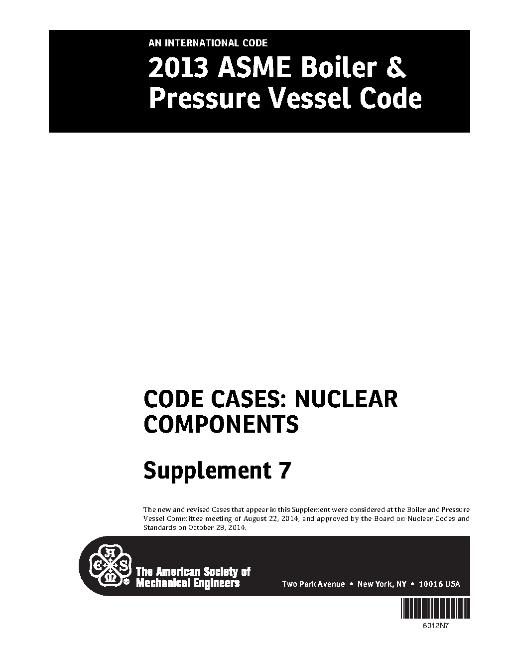 Code Cases are approved exceptions or alternatives to Code rules. They include specific requirements that, when fully and correctly implemented, help users achieve continued quality and safety. Code Cases are not mandatory but may be used for Code compliance by any user. The majority of Code Cases involve new materials, but many introduce new technologies and concepts, such as nondestructive examination and welding processes, updated design and fabrication methods, and streamlined rules for inspection and quality assurance.Because of their leading-edge content and timely issuance, Code Cases can be an invaluable resource for ASME Code users.