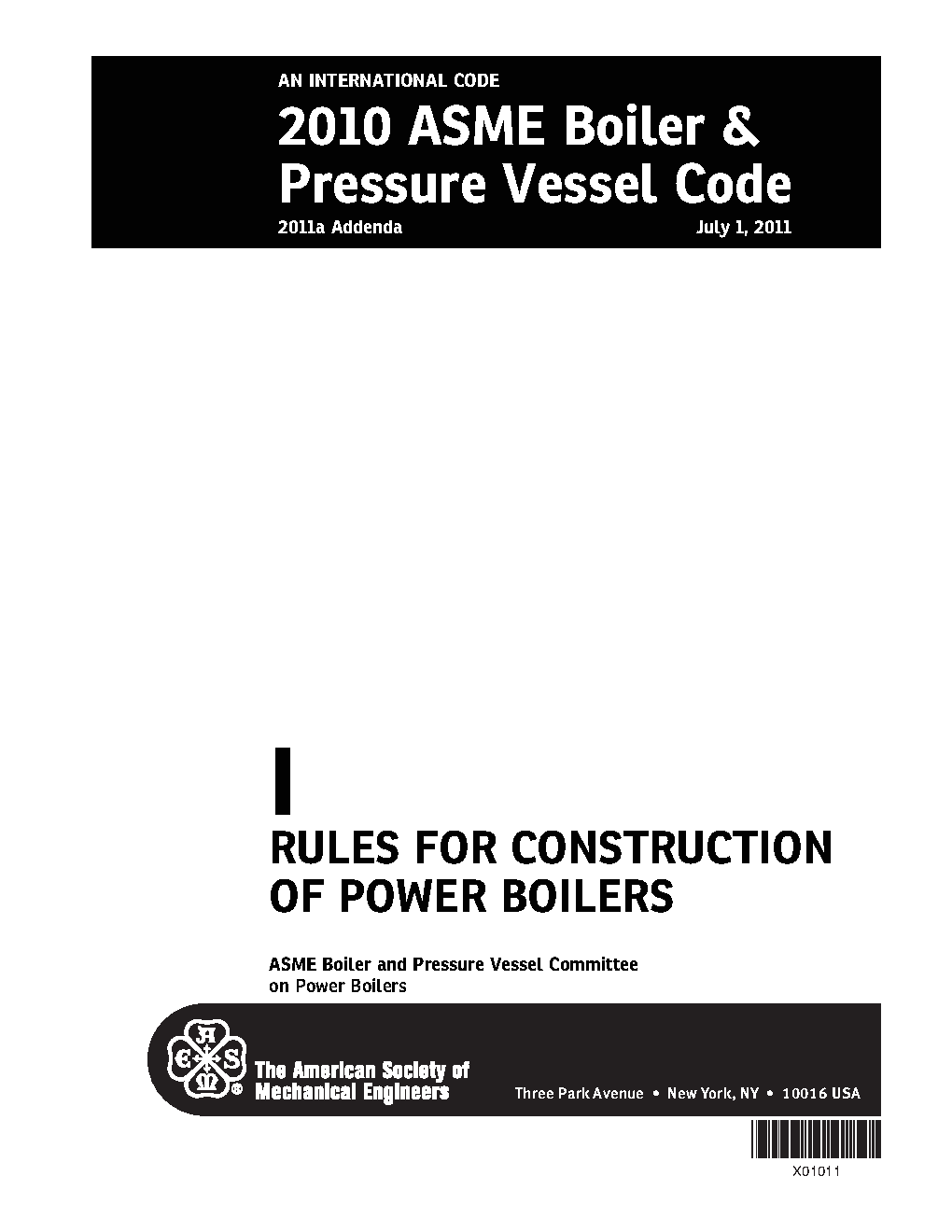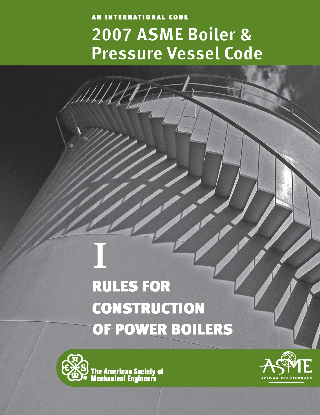 This Section provides requirements for all methods of construction of power, electric, and miniature boilers; high temperature water boilers, heat recovery steam generators, and certain fired pressure vessels to be used in stationary service; and power boilers used in locomotive, portable, and traction service. Rules pertaining to use of the ASME Certification Mark and V, A, M, PP, S and E Designators are also included. The rules are applicable to boilers in which steam or other vapor is generated at a pressures exceeding 15 psig, and high temperature water boilers intended for operation at pressures exceeding 160 psig and/or temperatures exceeding 250 degree F. Superheaters, economizers, and other pressure parts connected directly to the boiler without intervening valves are considered as part of the scope of Section I. Careful application of this Section will help users to comply with applicable regulations within their jurisdictions, while achieving the operational, cost and safety benefits to be gained from the many industry best-practices detailed within these volumes. Intended for manufacturers, users, constructors, designers and others concerned with the design, fabrication, assembly, erection, examination, inspection and testing of pressure vessels, plus all potential governing entities.