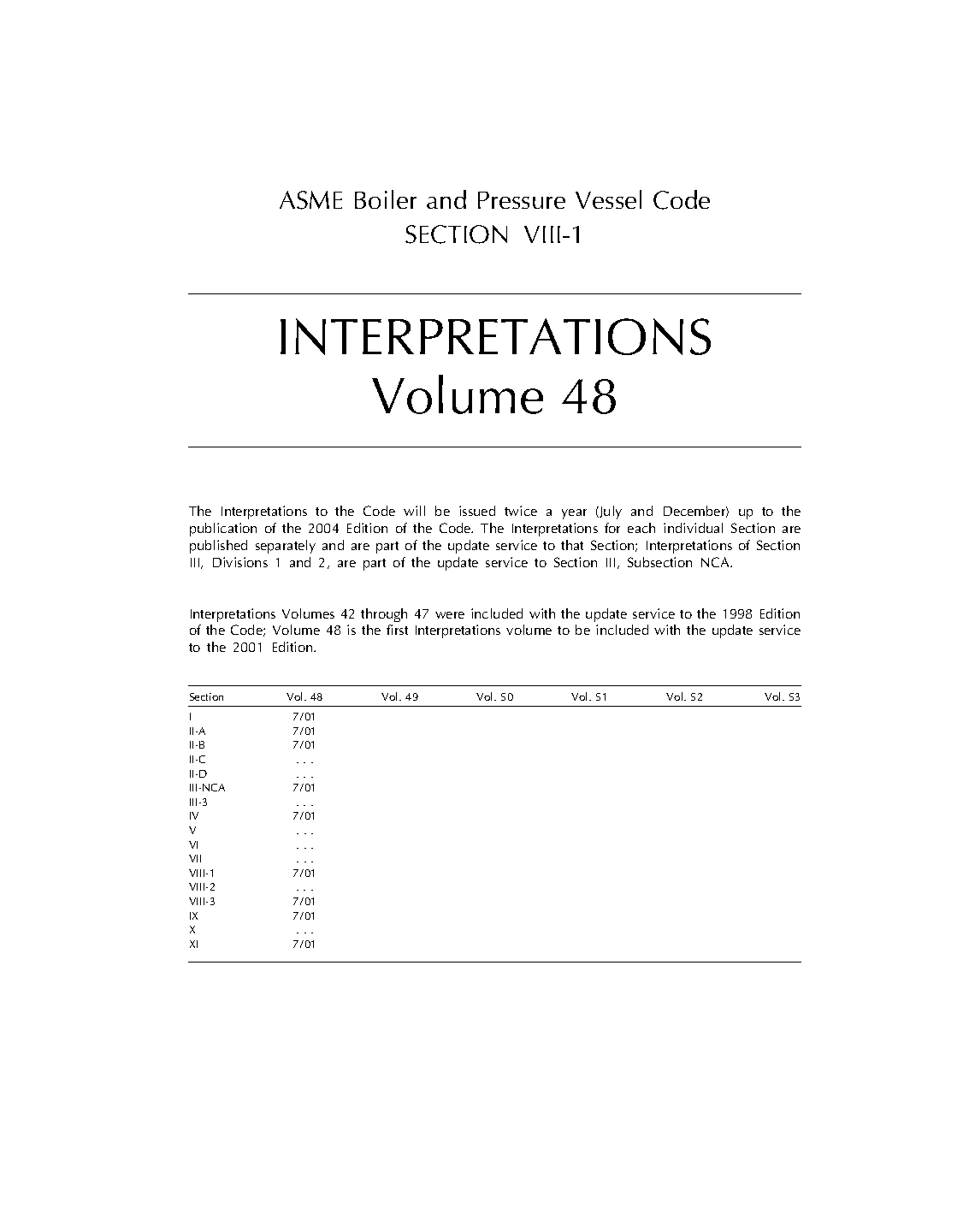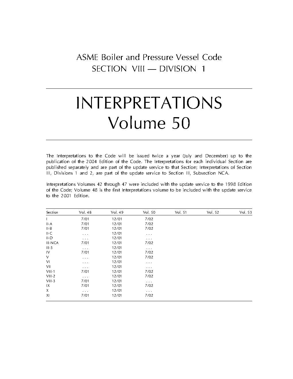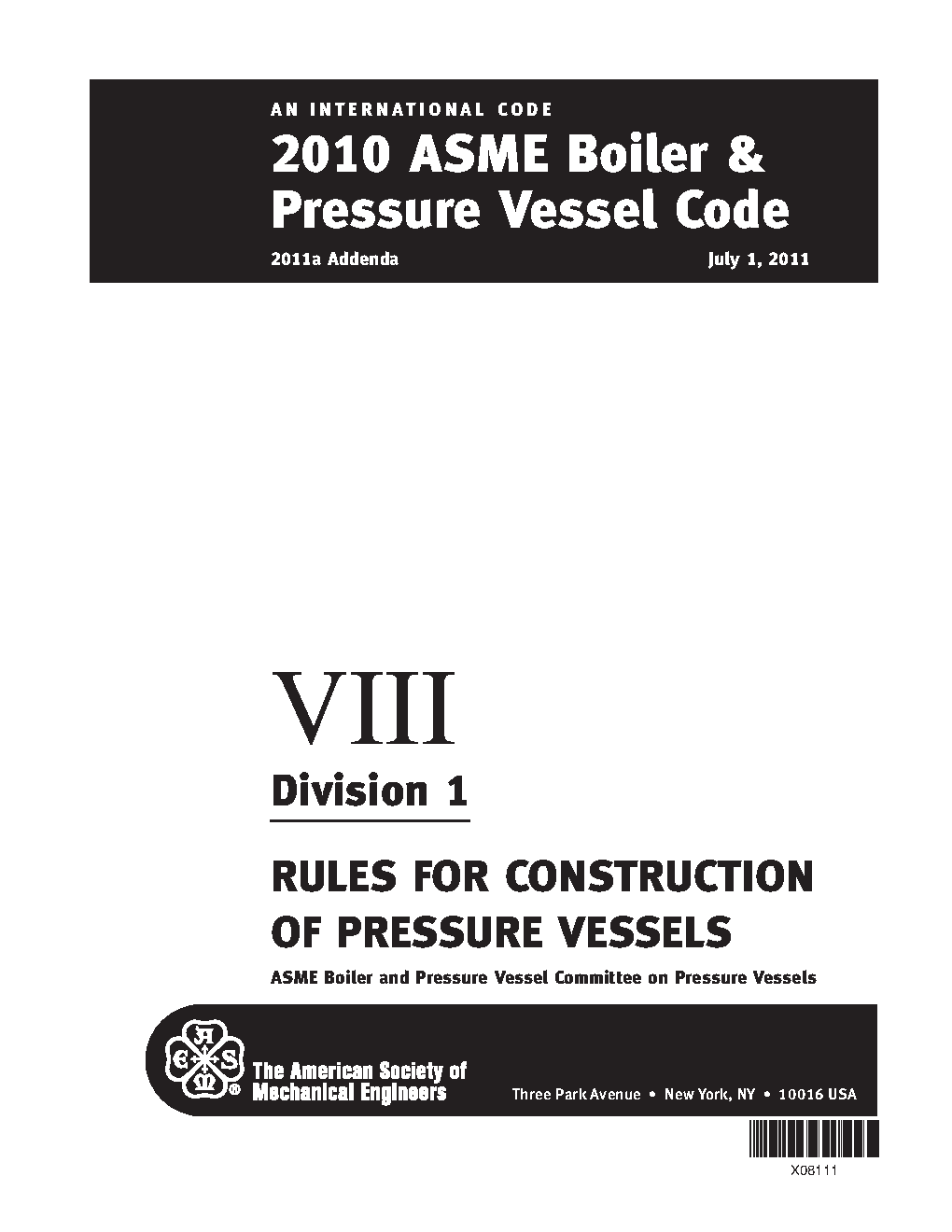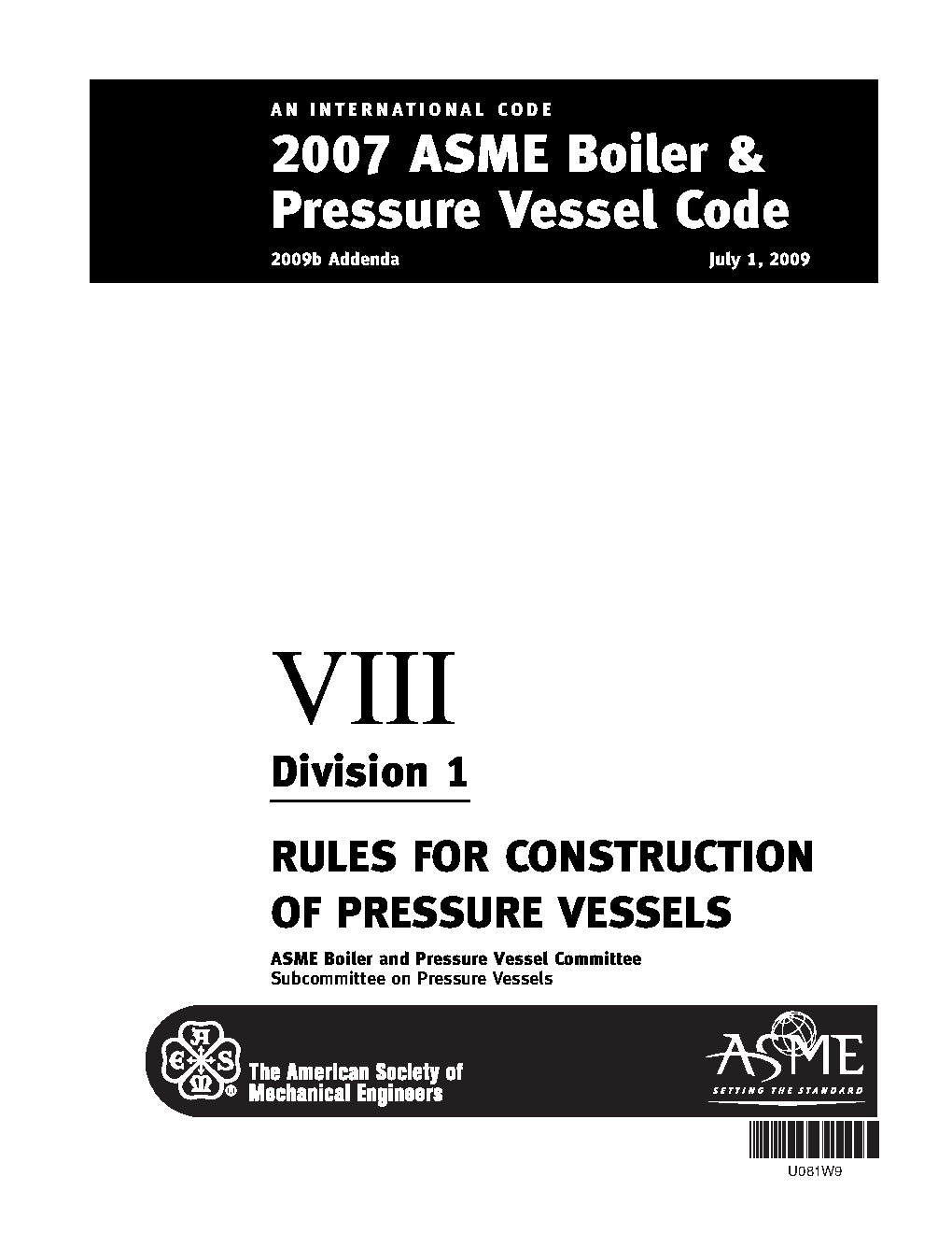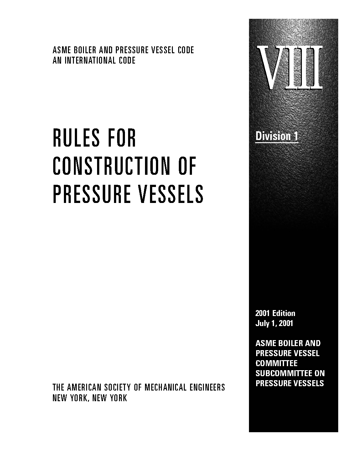 Section VIII, Rules for Construction of Pressure Vessels, Division 1