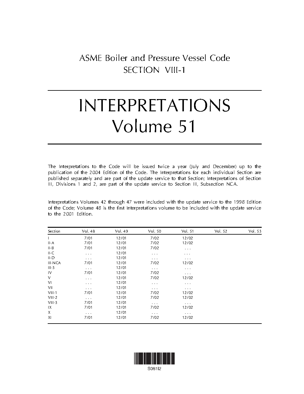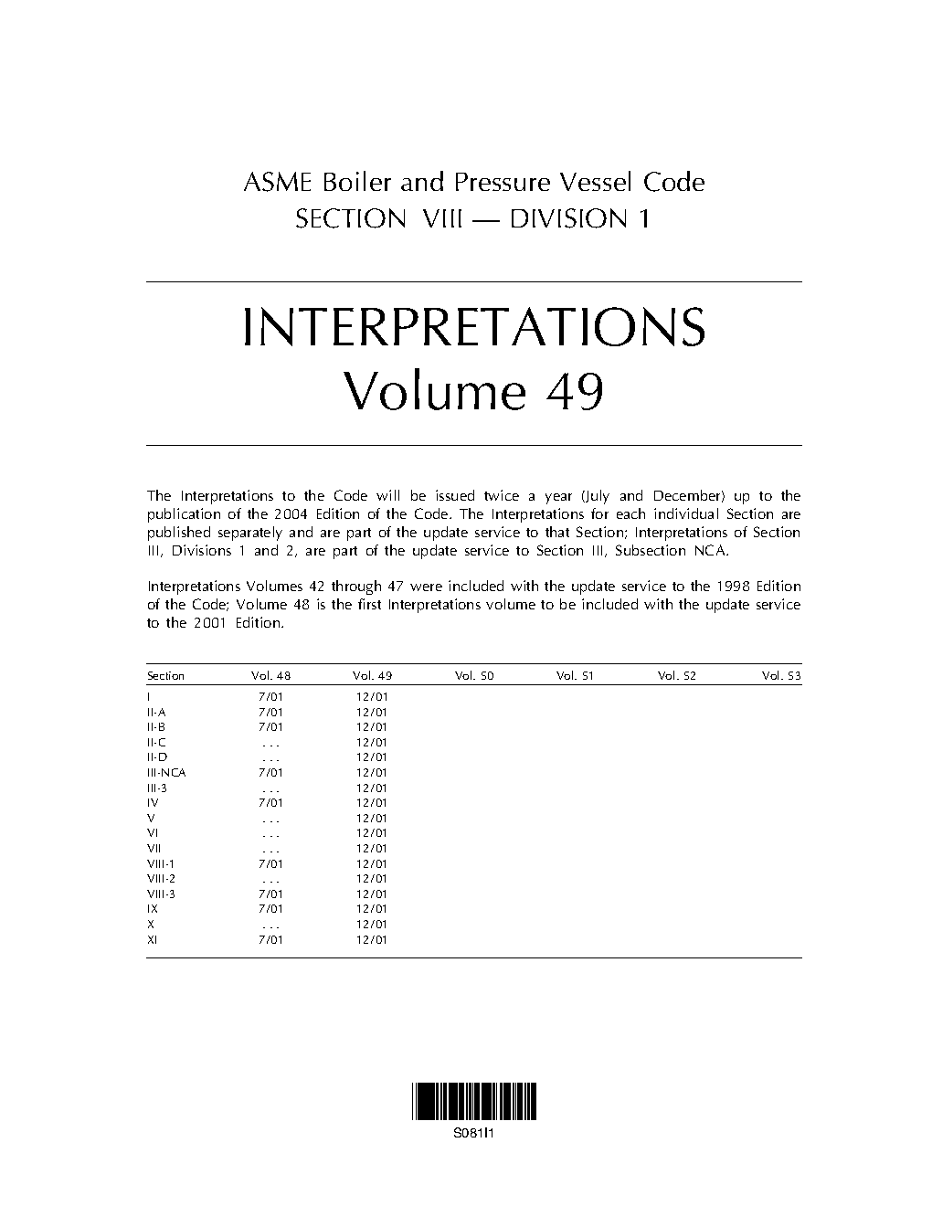This Division of Section VIII provides requirements applicable to the design, fabrication, inspection, testing, and certification of pressure vessels operating at either internal or external pressures exceeding 15 psig. Such pressure vessels may be fired or unfired. Specific requirements apply to several classes of material used in pressure vessel construction, and also to fabrication methods such as welding, forging and brazing. It contains mandatory and nonmandatory appendices detailing supplementary design criteria, nondestructive examination and inspection acceptance standards. Rules pertaining to the use of the U, UM and UV ASME Product Certification Marks are also included. Careful application of this Section will help users to comply with applicable regulations within their jurisdictions, while achieving the operational, cost and safety benefits to be gained from the many industry best-practices detailed within these volumes.