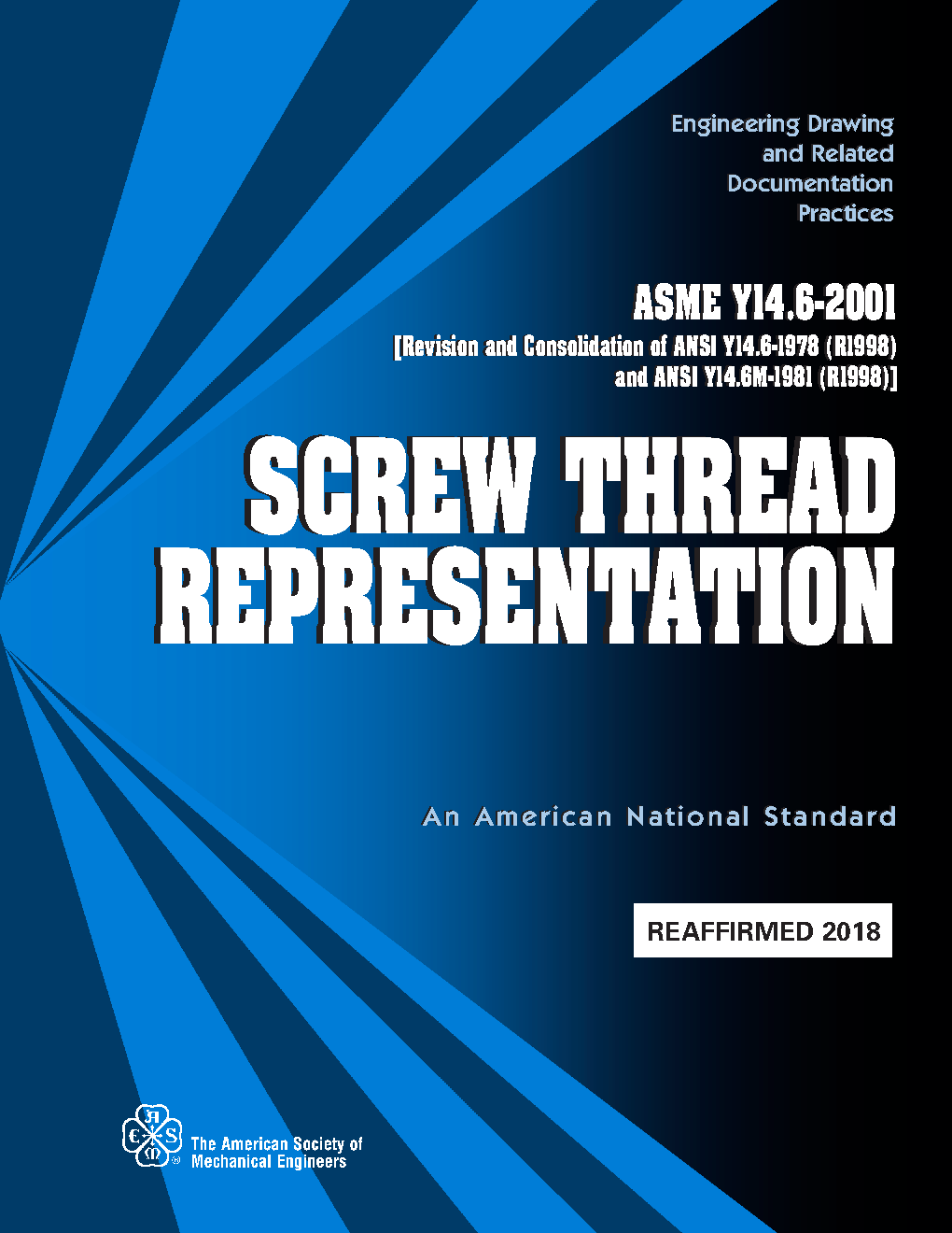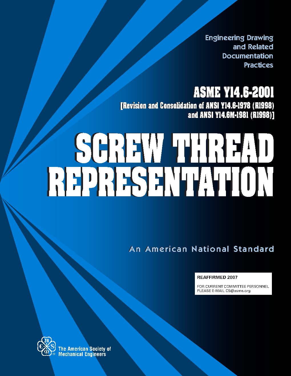 This Standard establishes requirements for pictorial representation, specification, and dimensioning of screw threads on drawings; it is not concerned with standards for dimensional control of screw threads. Information helpful in the design and selection of screw threads to meet specific requirements is included in the B1 series of the ASME Standards for Screw Threads (see para. 1.3).