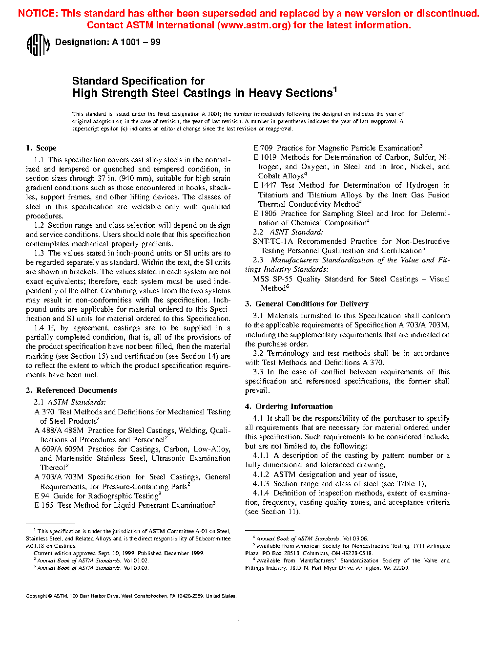 1.4 If, by agreement, castings are to be supplied in a partially completed condition, that is, all of the provisions of the product specification have not been filled, then the material marking (see Section 15) and certification (see Section 14) are to reflect the extent to which the product specification requirements have been met.