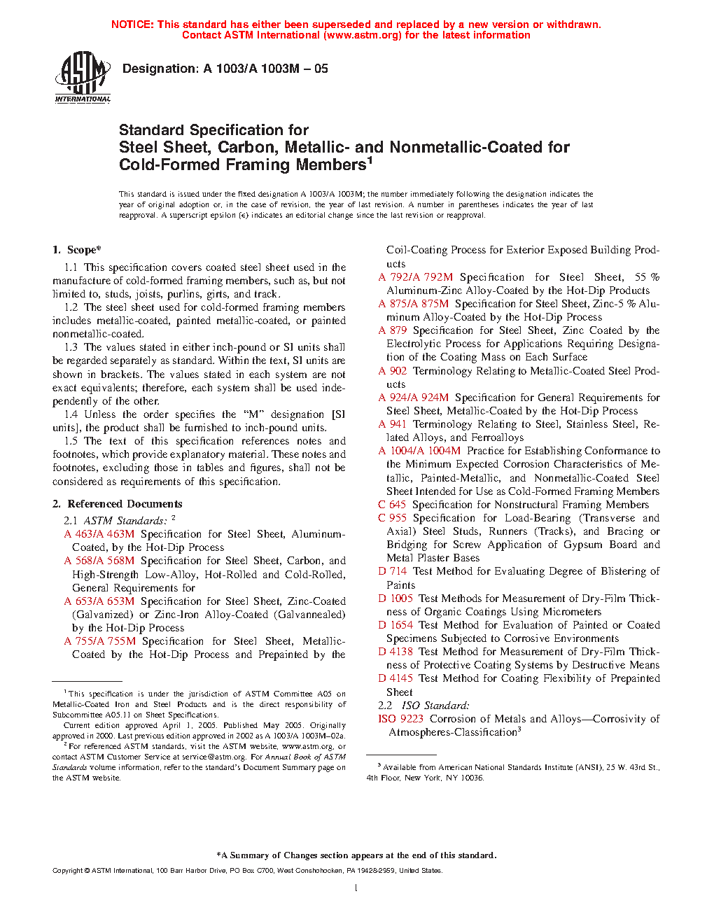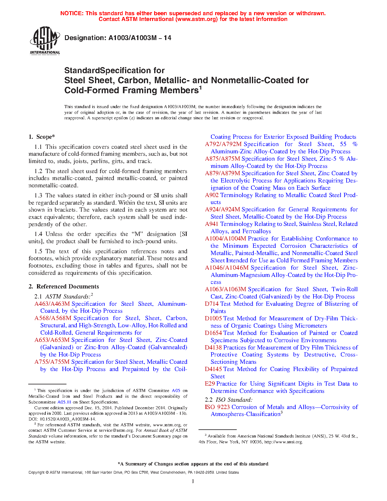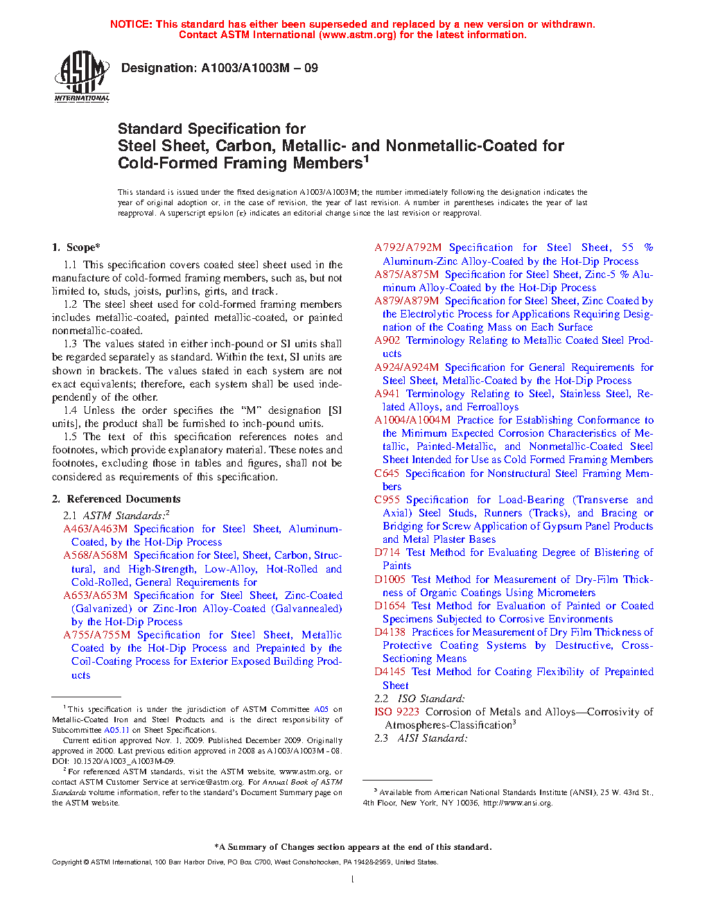 1.1 This specification covers coated steel sheet used in the manufacture of cold-formed framing members, such as, but not limited to, studs, joists, purlins, girts, and track.