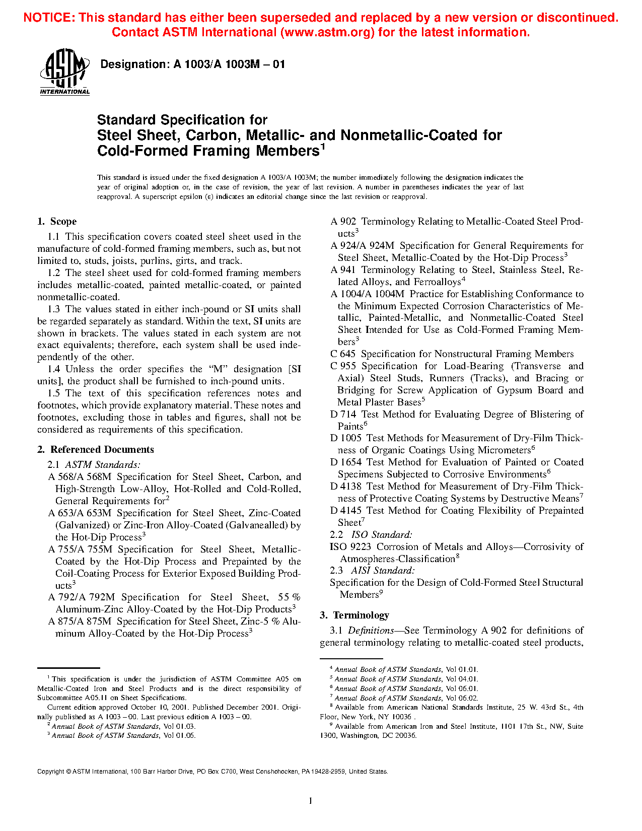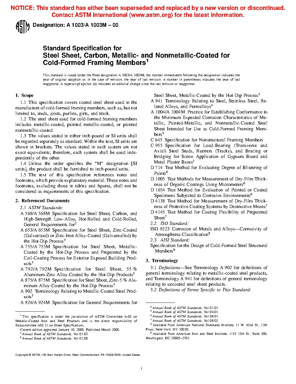 1.2 The steel sheet used for cold-formed framing members includes metallic-coated, painted metallic-coated, or painted nonmetallic-coated.