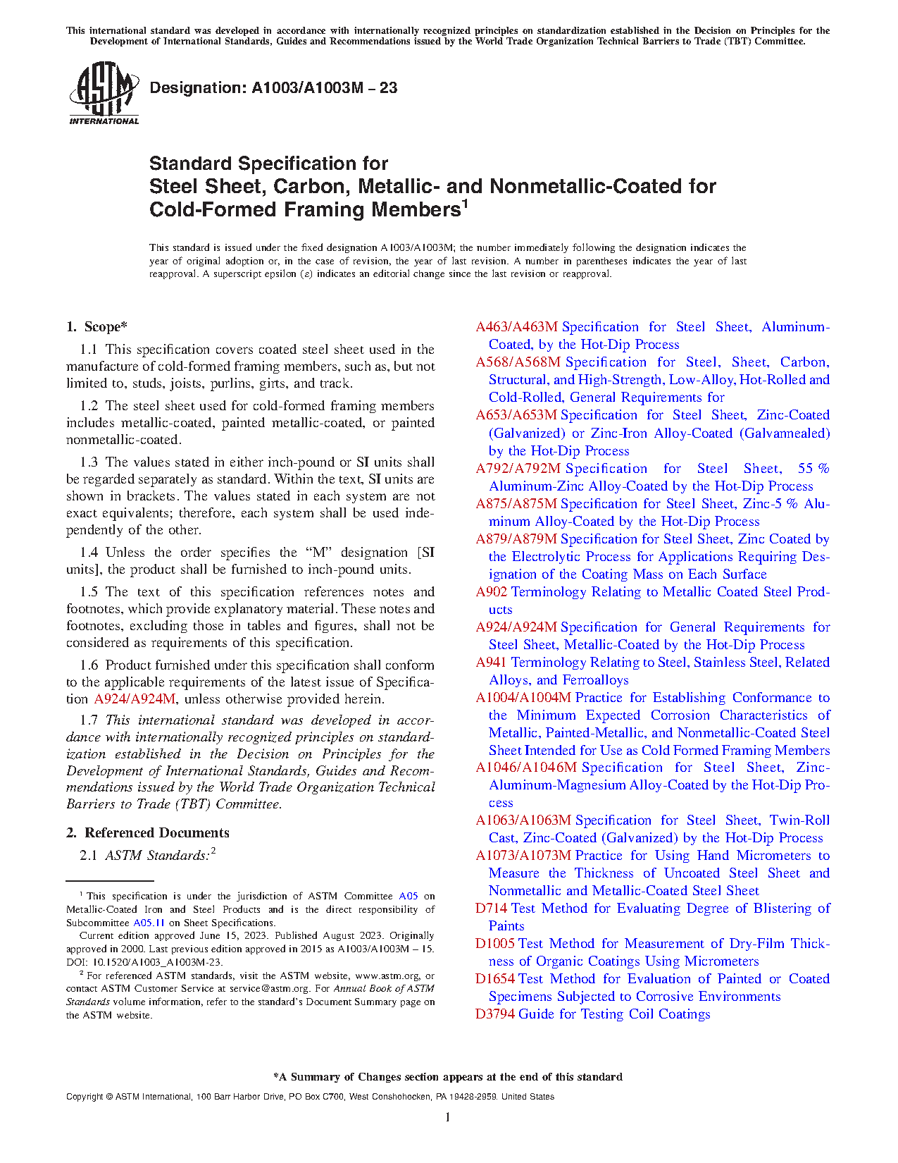 1.2 The steel sheet used for cold-formed framing members includes metallic-coated, painted metallic-coated, or painted nonmetallic-coated.