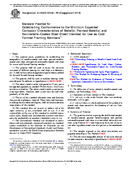 This practice assesses whether coated materials not currently in Specification A1003/A1003M satisfy the required minimum corrosion characteristics.