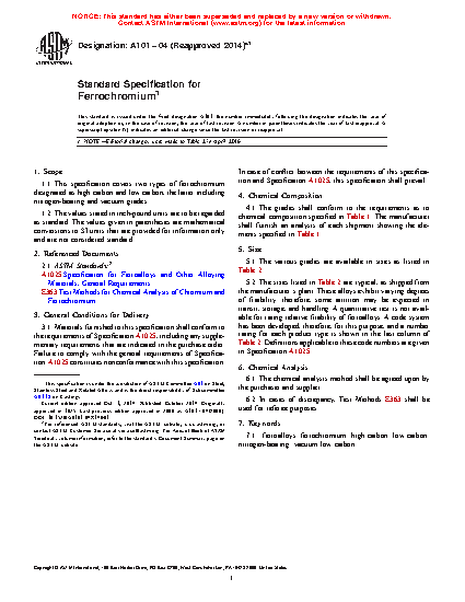 1.1 This specification covers two types of ferrochromium designated as high carbon and low carbon, the latter including nitrogen-bearing and vacuum grades.