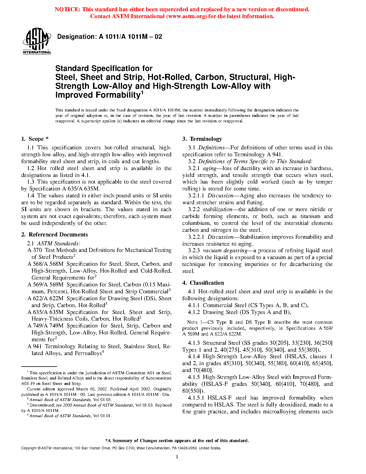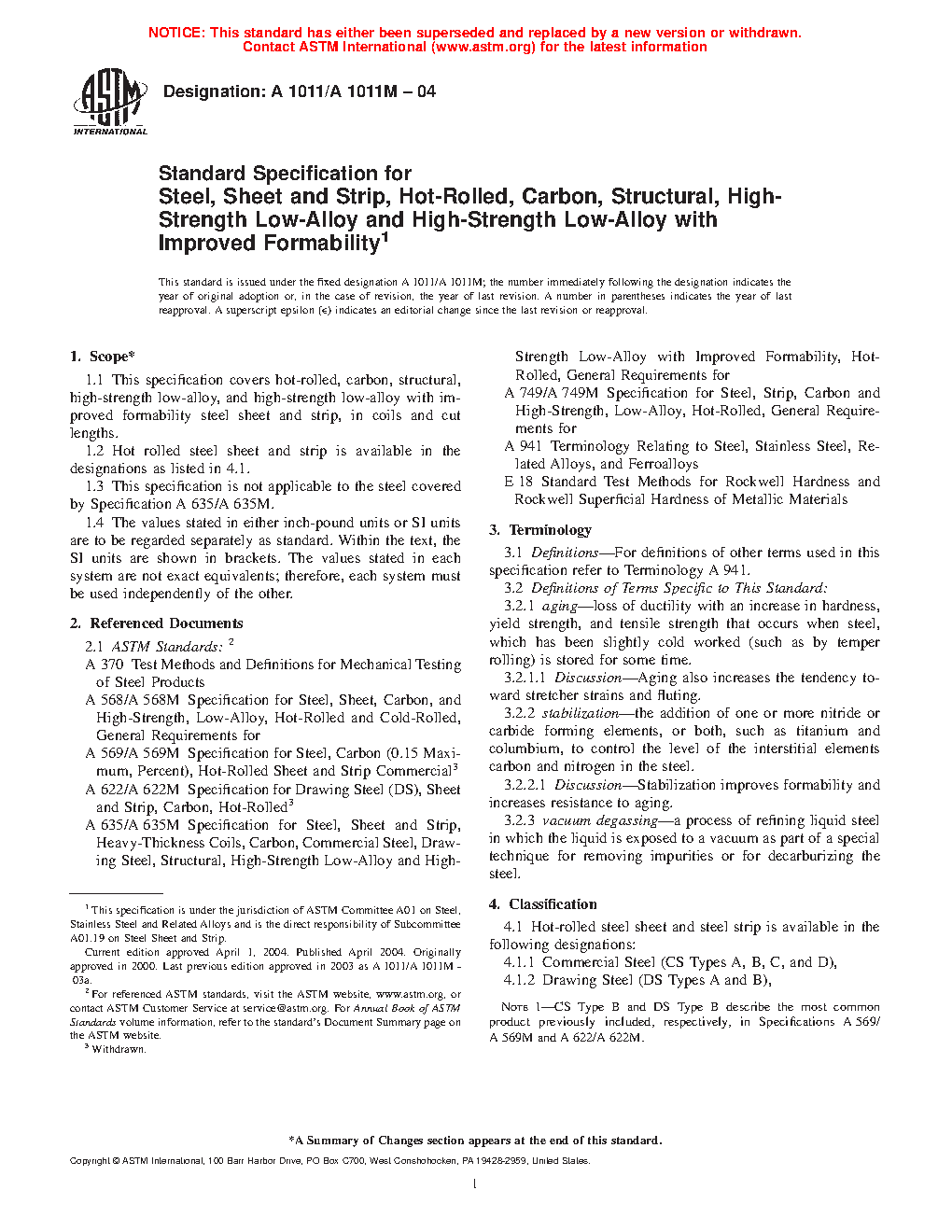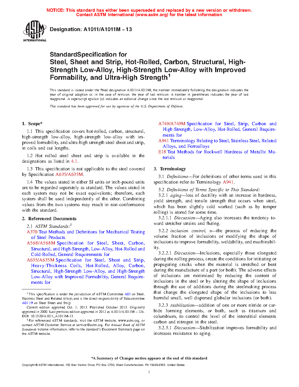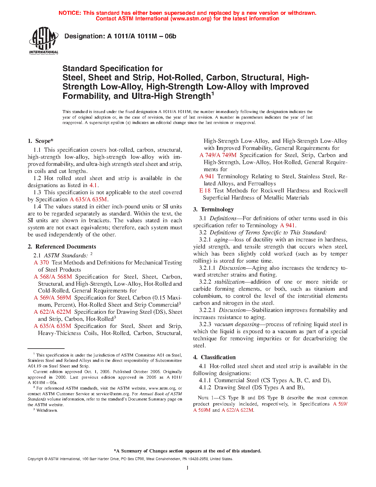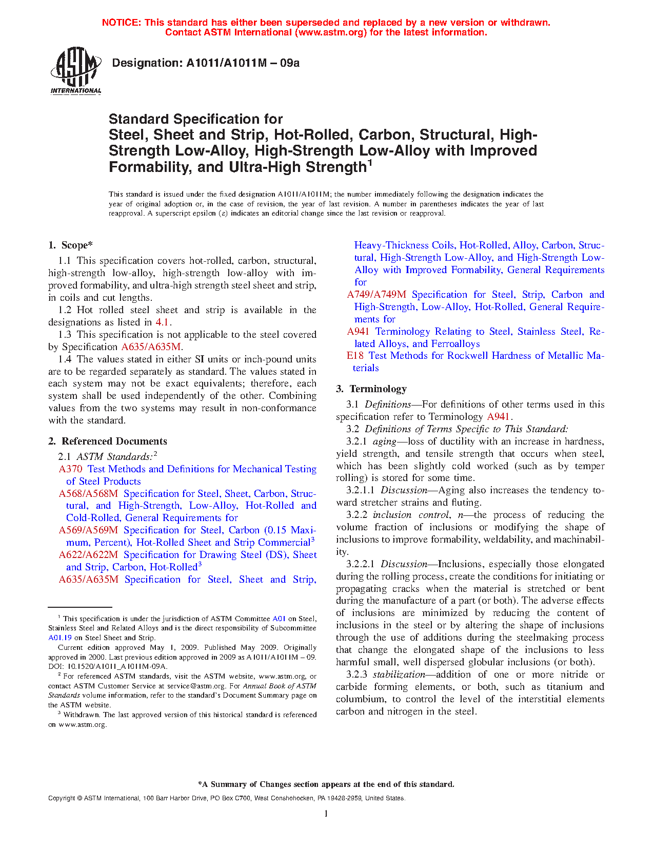 1.2 Hot rolled steel sheet and strip is available in the designations as listed in 4.1.