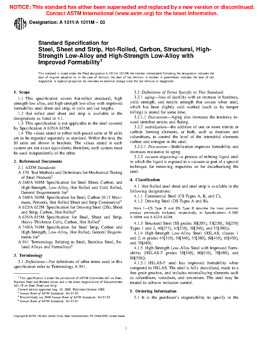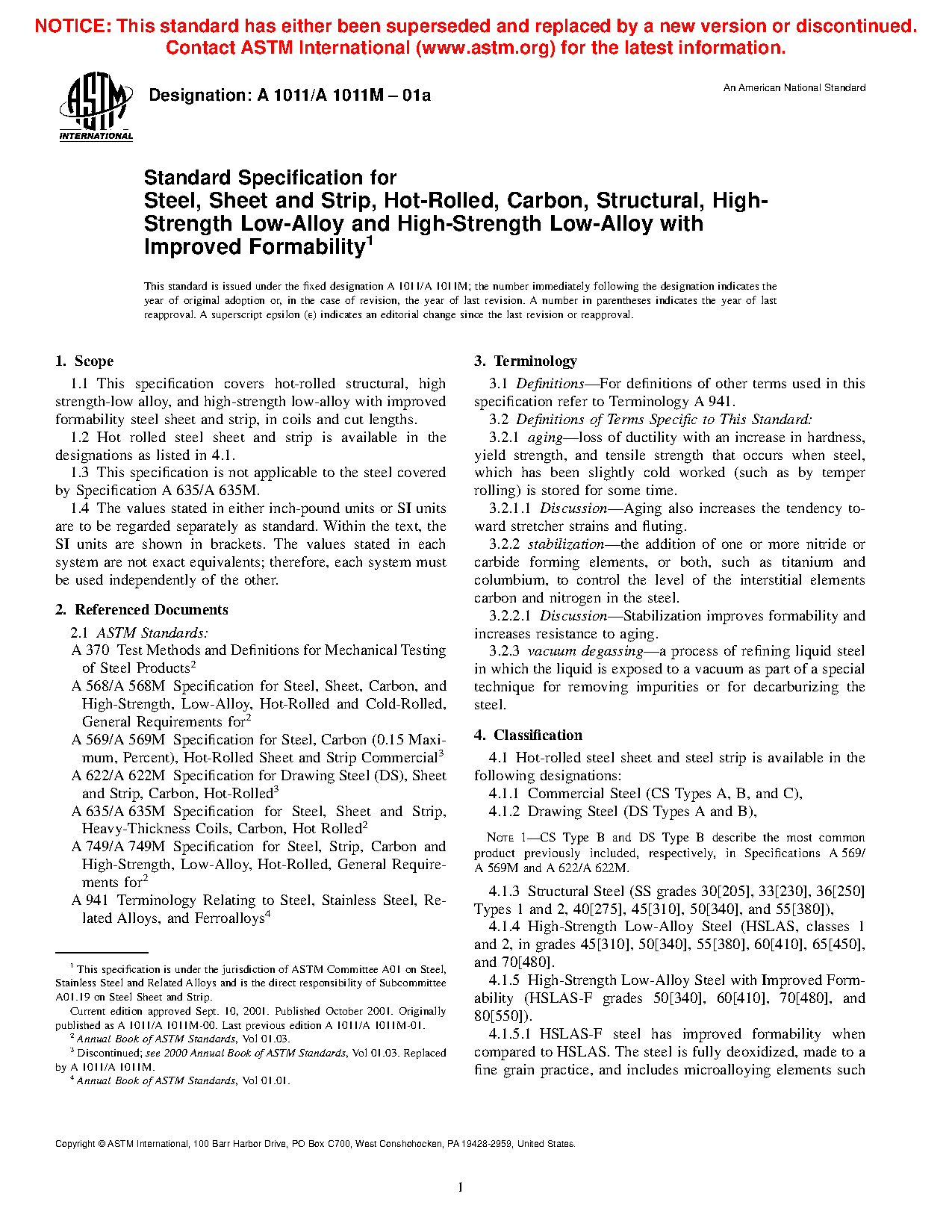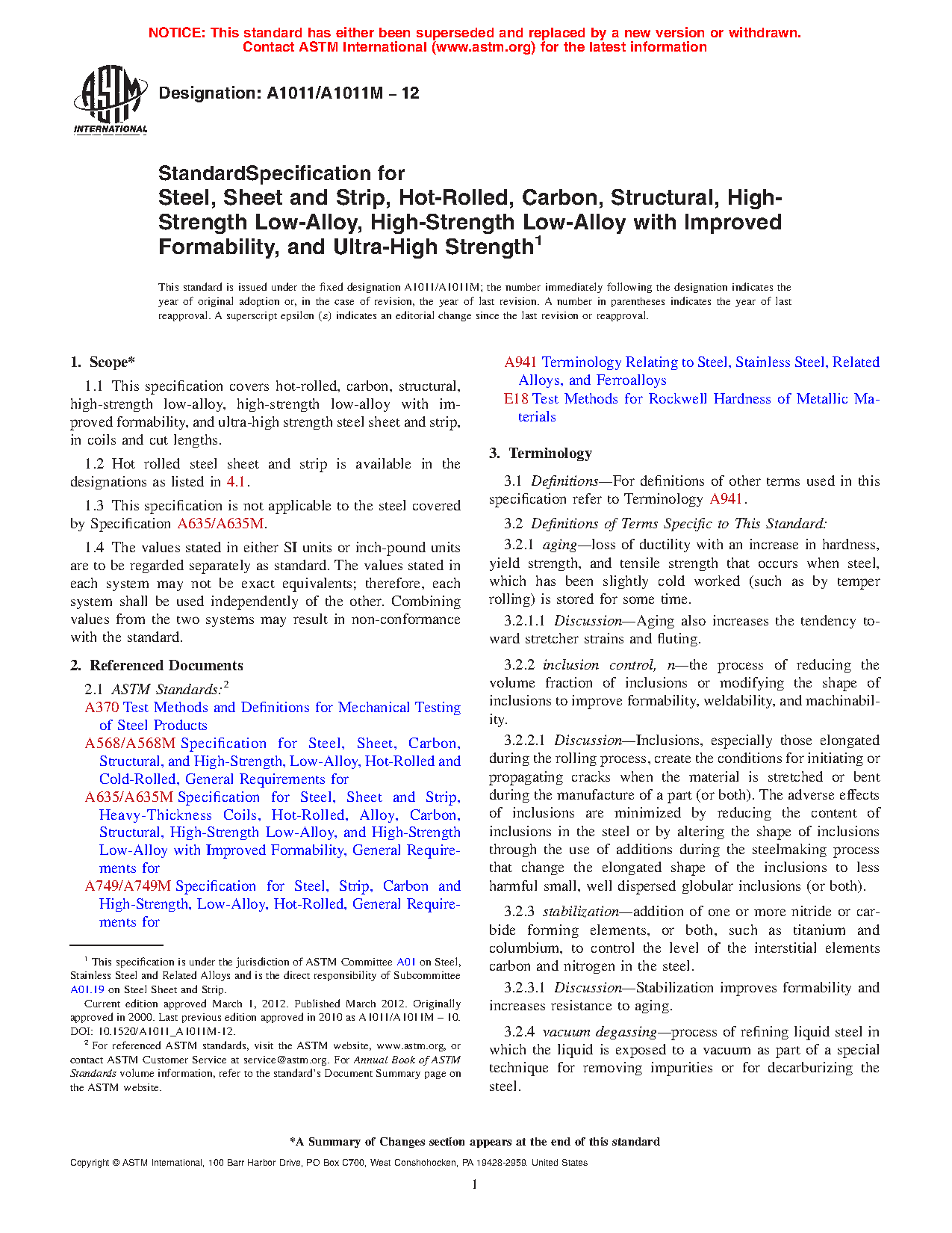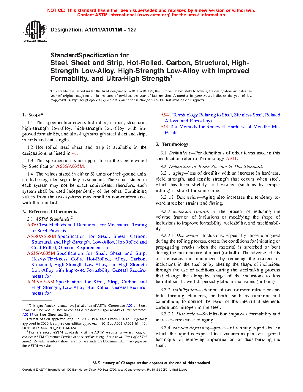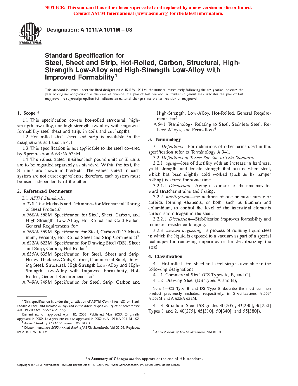 1.2 Hot rolled steel sheet and strip is available in the designations as listed in 4.1.