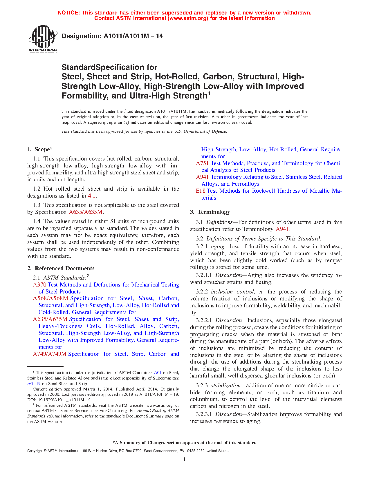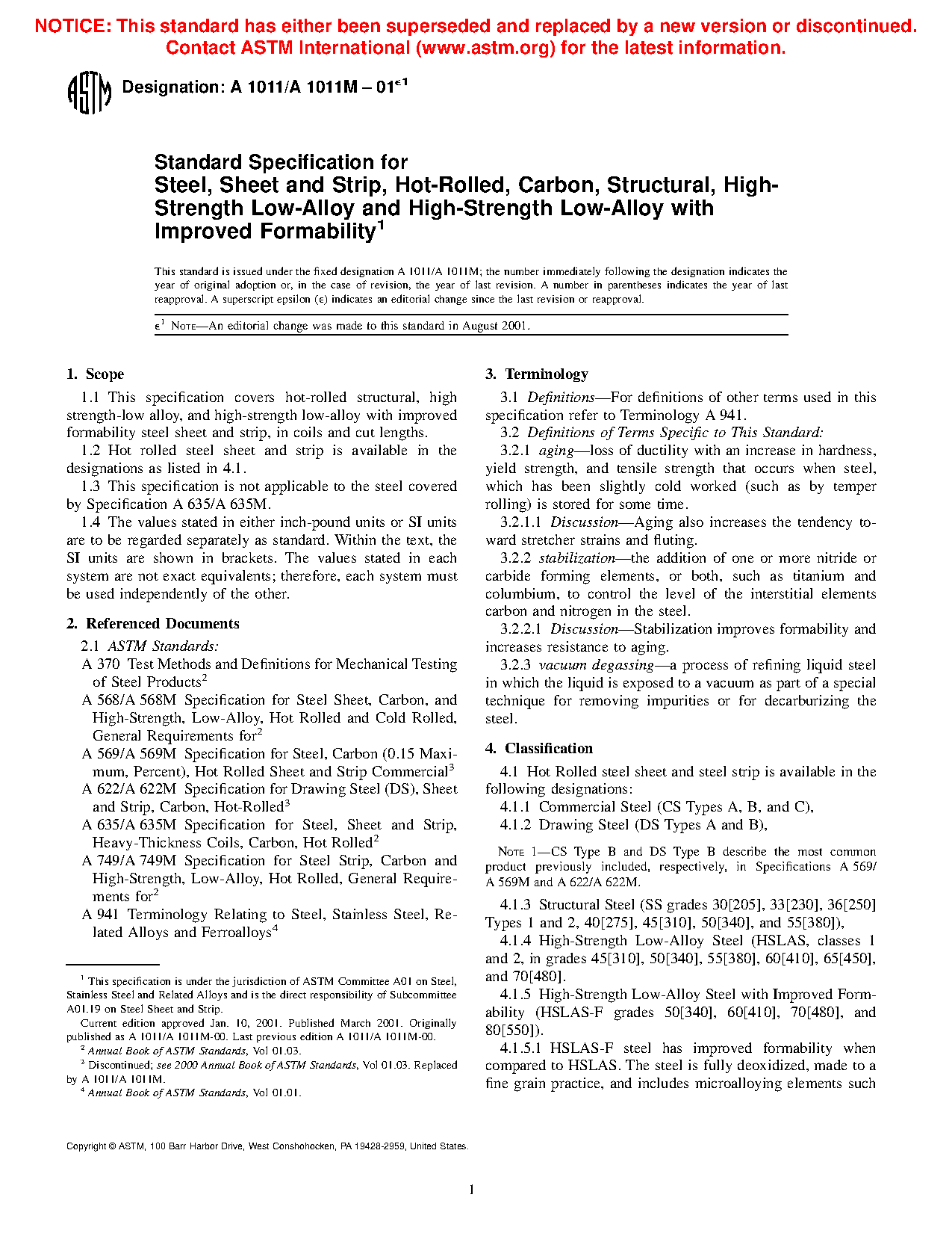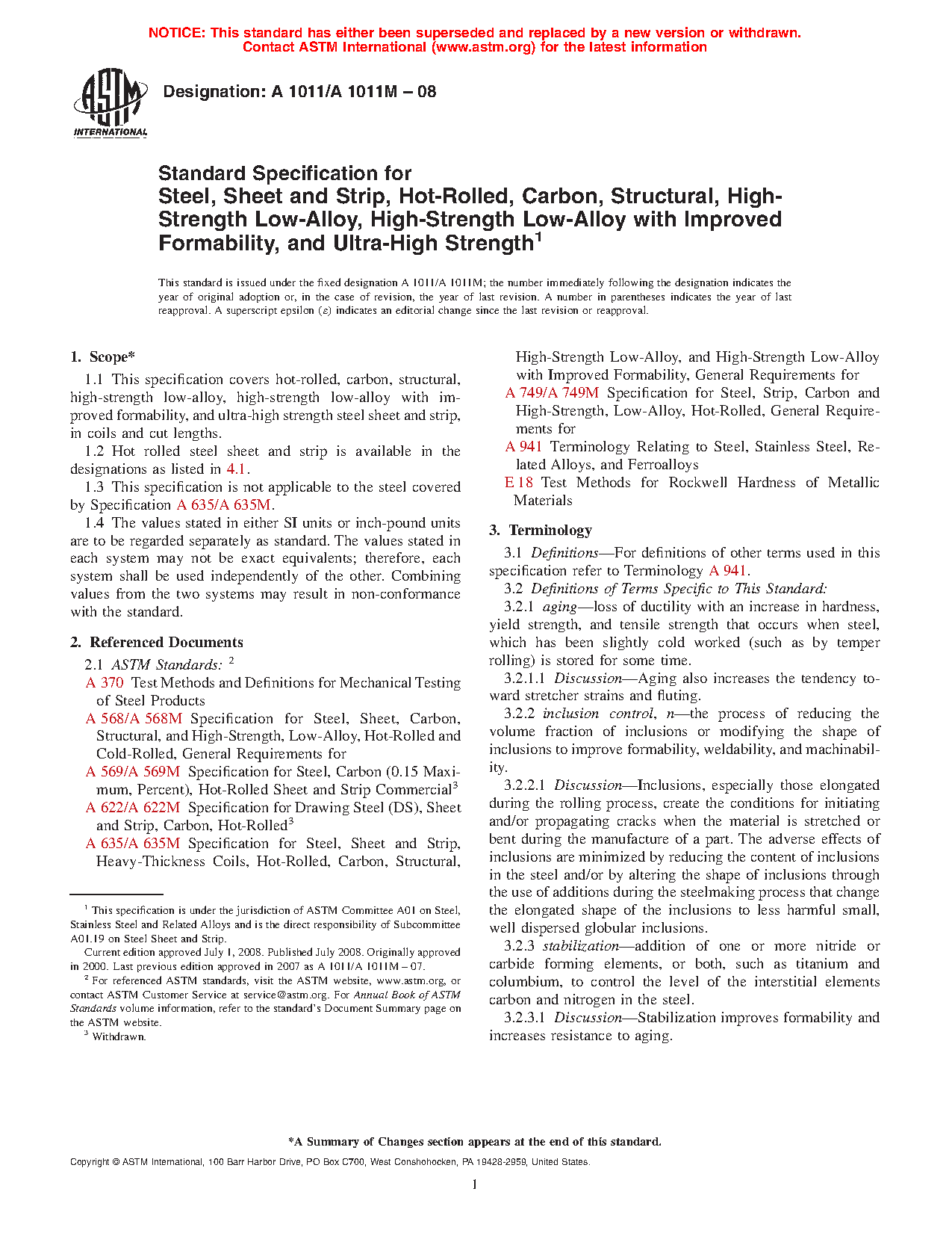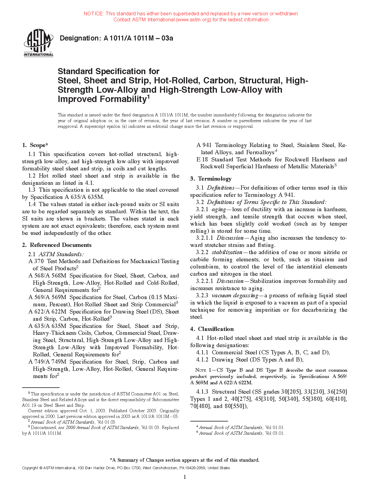 1.1 This specification covers hot-rolled, carbon, structural, high-strength low-alloy, high-strength low-alloy with improved formability, and ultra-high strength steel sheet and strip, in coils and cut lengths.