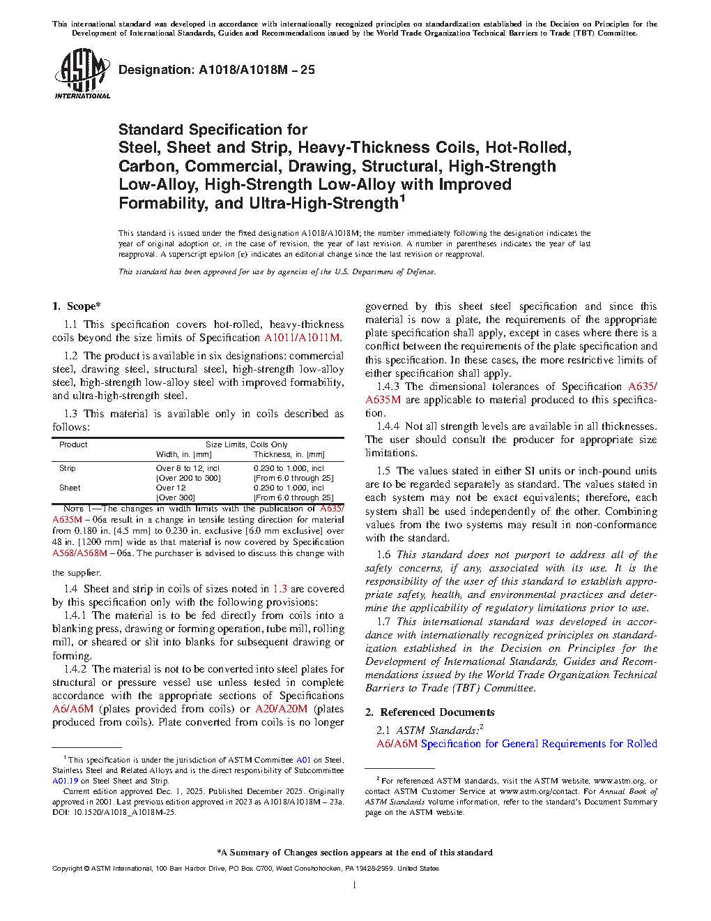 1.1 This specification covers hot-rolled, heavy-thickness coils beyond the size limits of Specification A1011/A1011M.