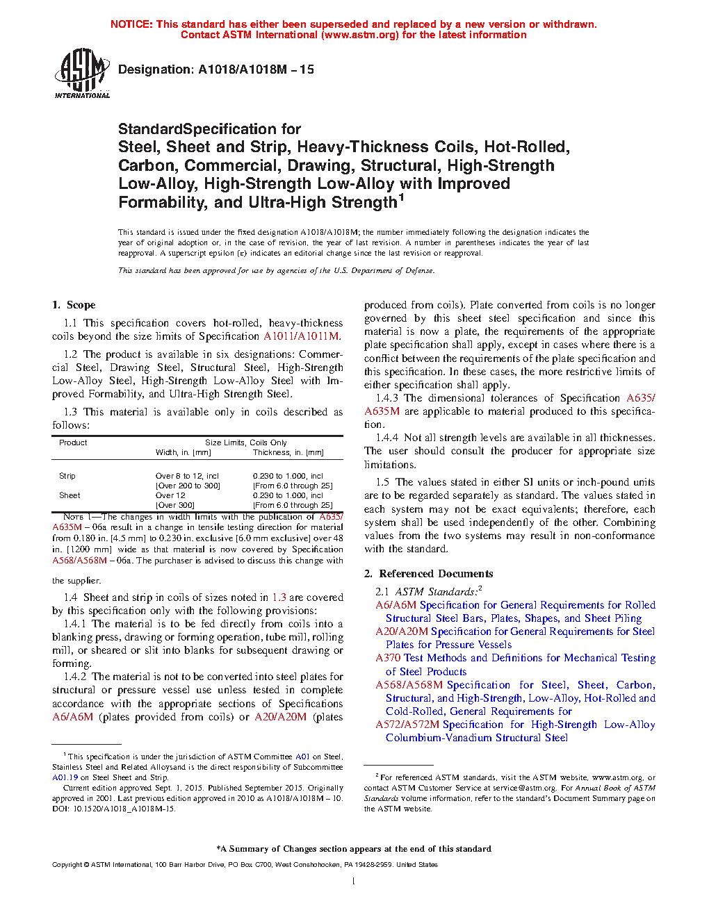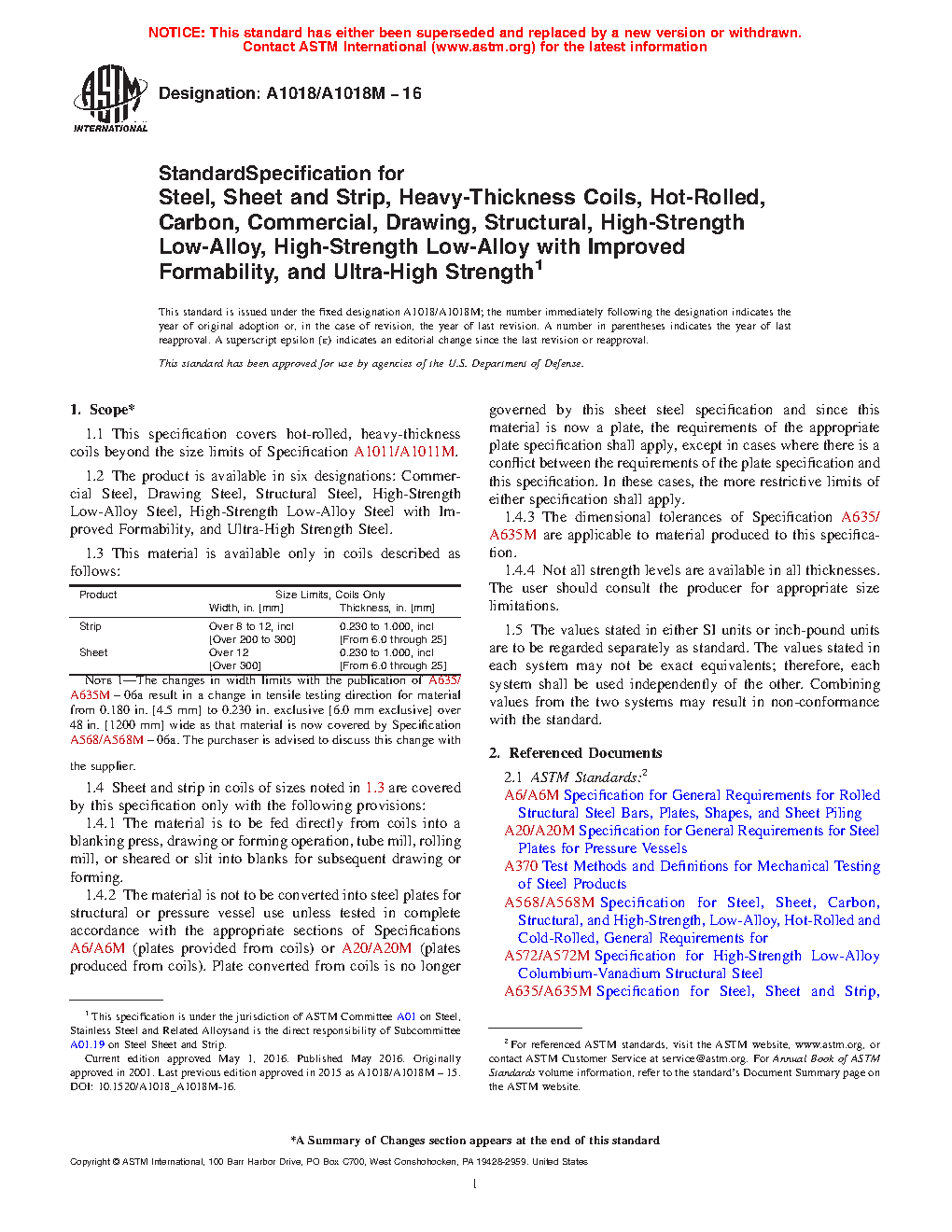 1.2 The product is available in six designations: Commercial Steel, Drawing Steel, Structural Steel, High-Strength Low-Alloy Steel, High-Strength Low-Alloy Steel with Improved Formability, and Ultra-High Strength Steel.