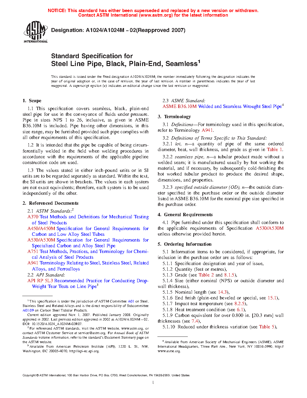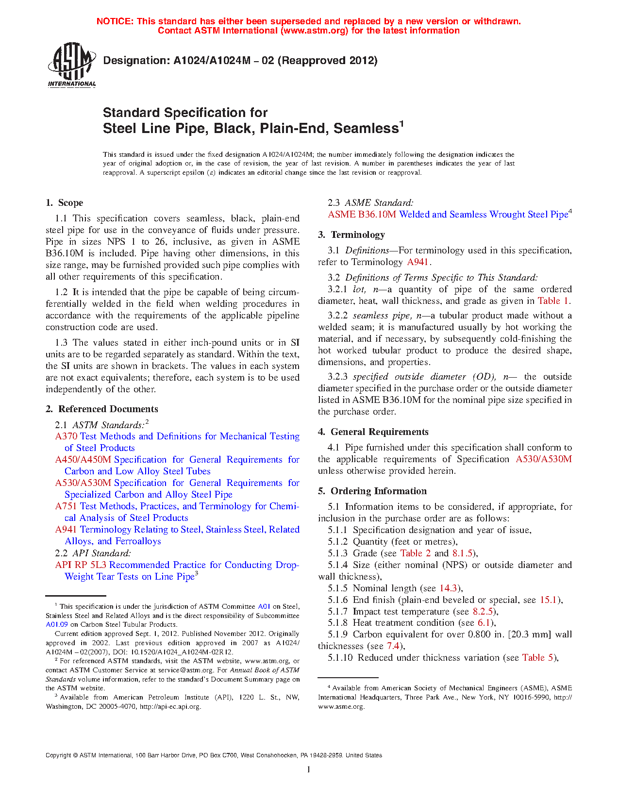 1.2 It is intended that the pipe be capable of being circumferentially welded in the field when welding procedures in accordance with the requirements of the applicable pipeline construction code are used.