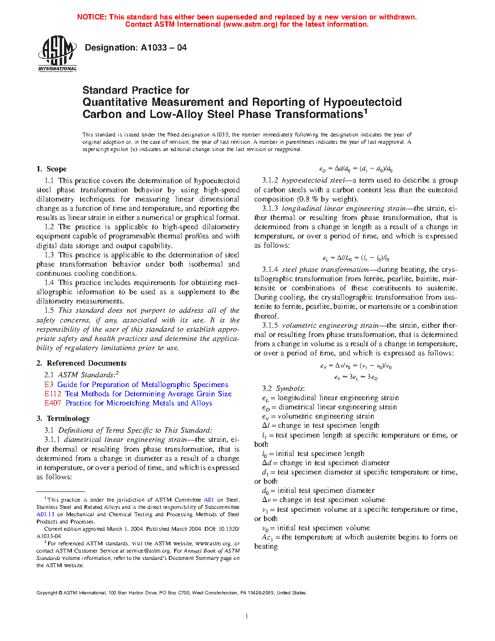 1.3 This practice is applicable to the determination of steel phase transformation behavior under both isothermal and continuous cooling conditions.