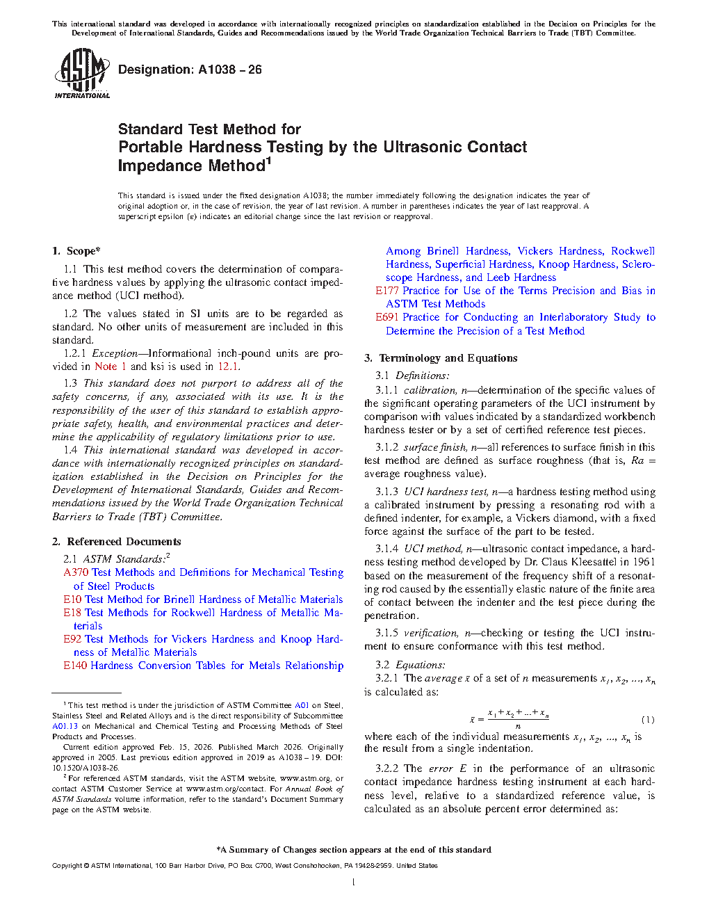 1.1 This test method covers the determination of comparative hardness values by applying the Ultrasonic Contact Impedance Method (UCI Method).
