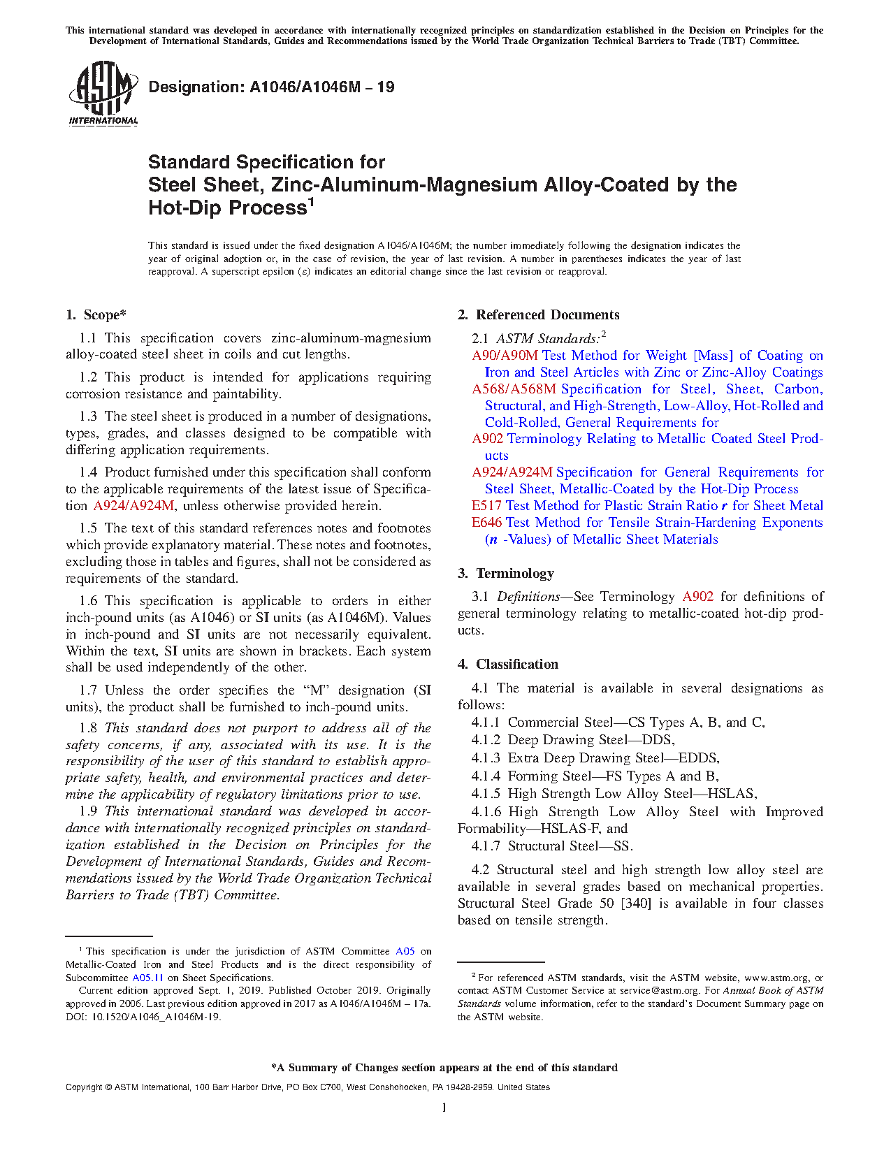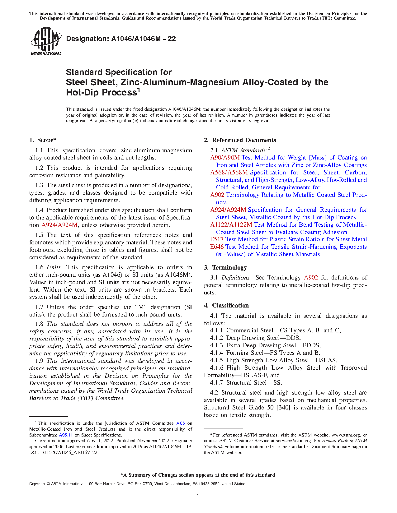 1.1 This specification covers zinc-aluminum-magnesium alloy-coated steel sheet in coils and cut lengths.