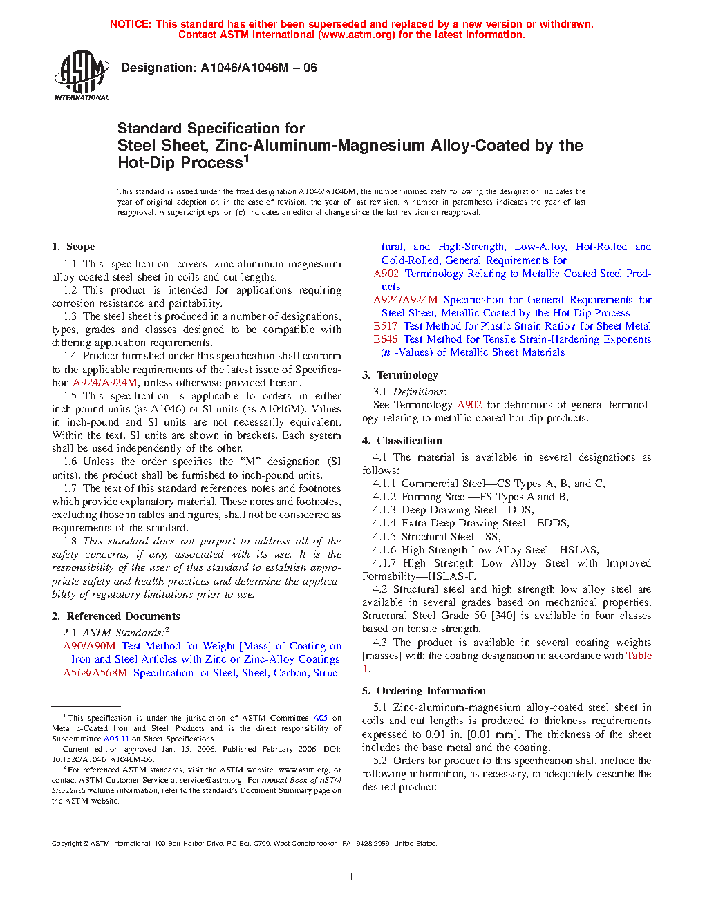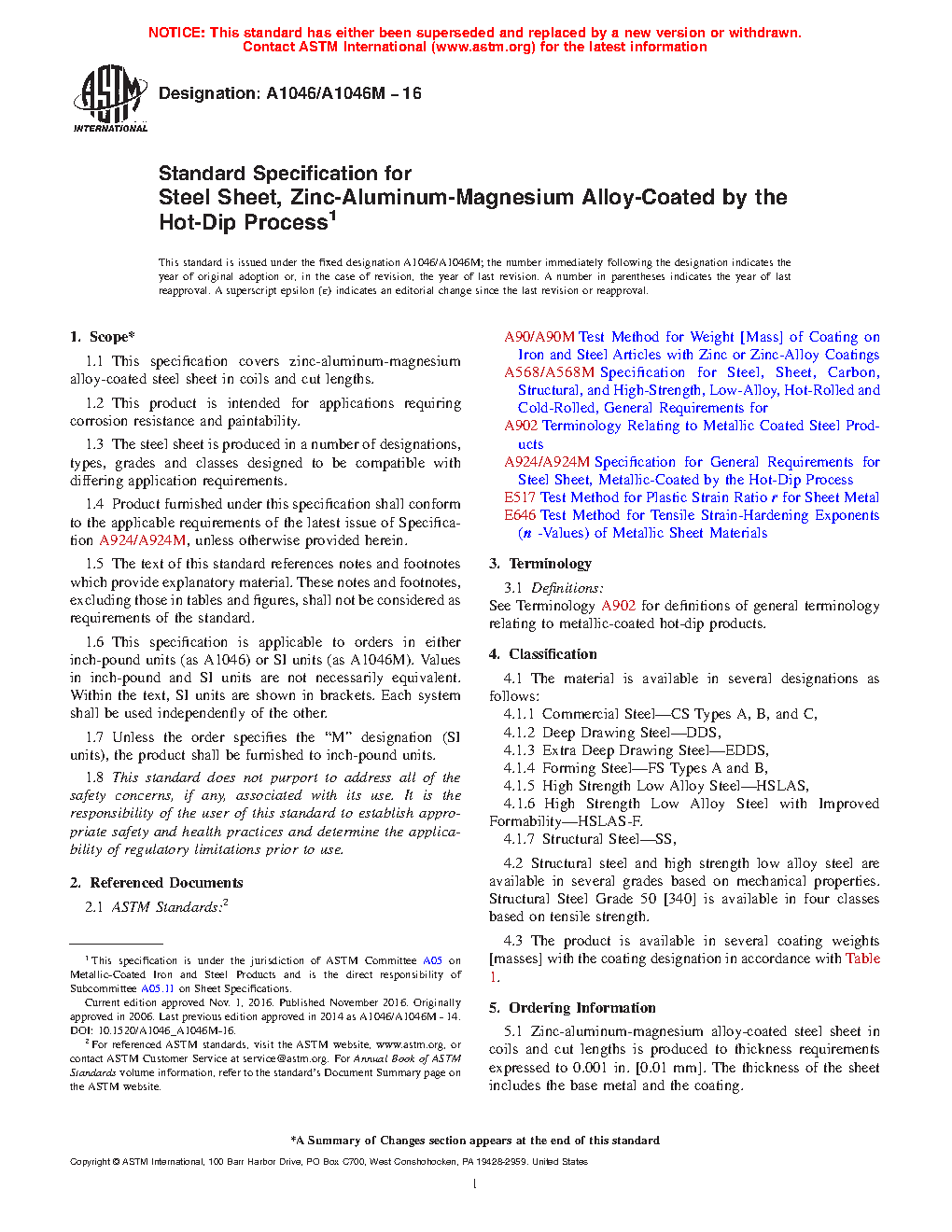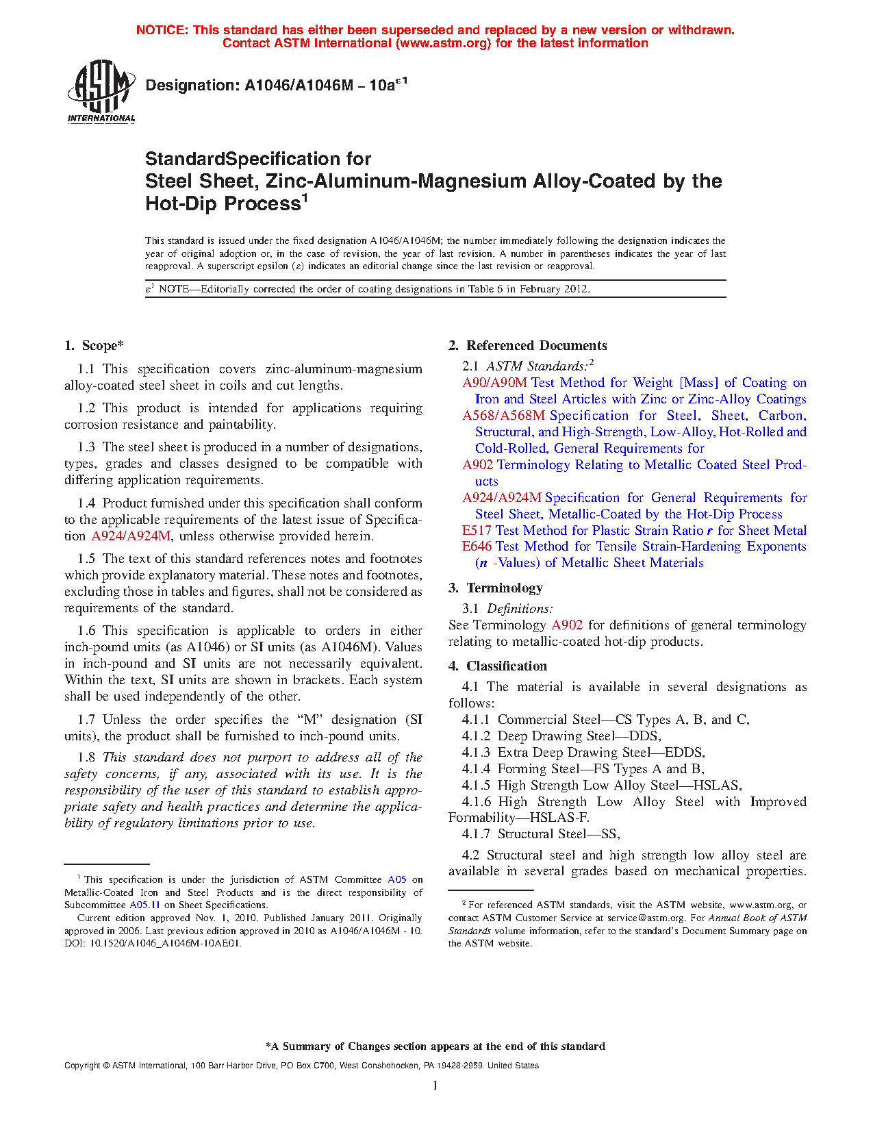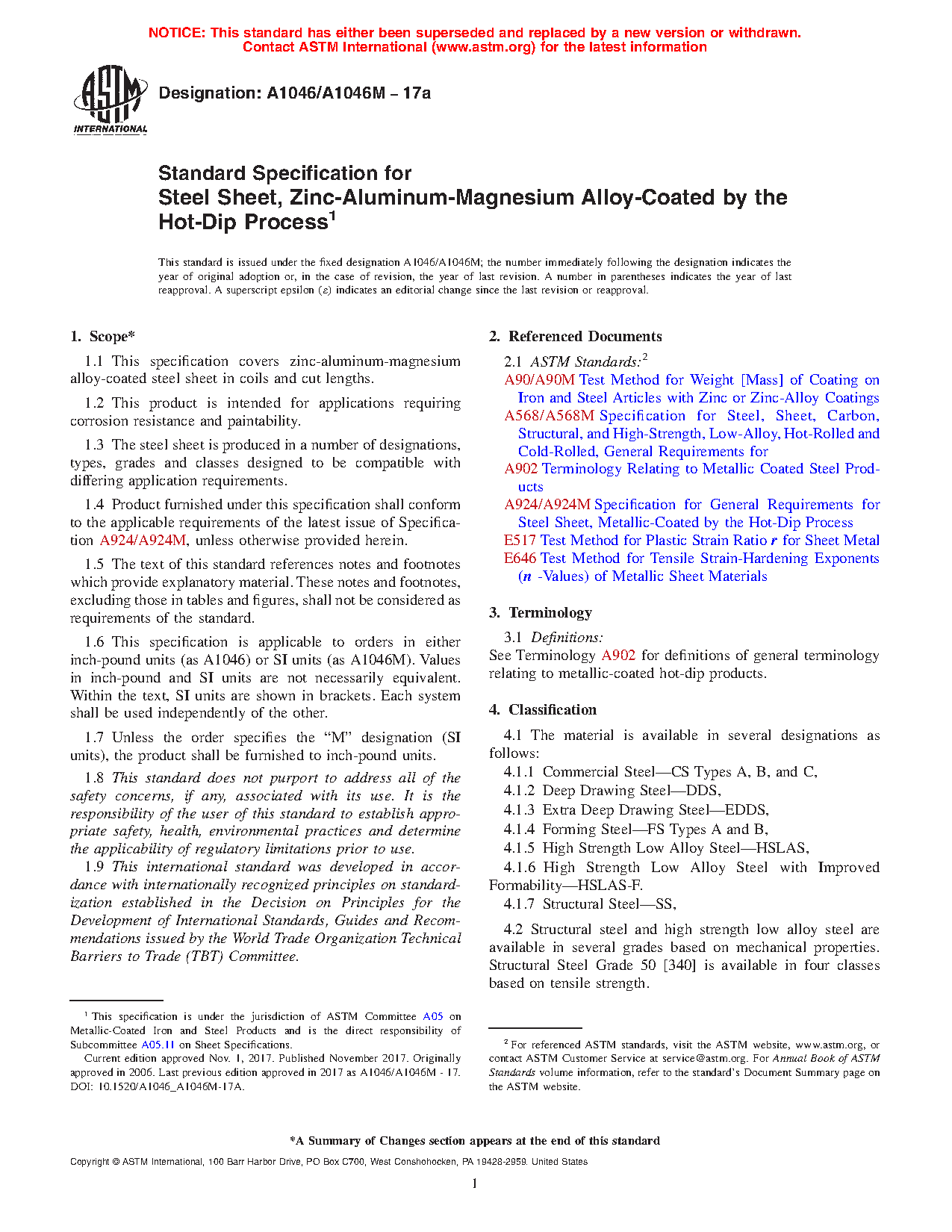 1.3 The steel sheet is produced in a number of designations, types, grades, and classes designed to be compatible with differing application requirements.