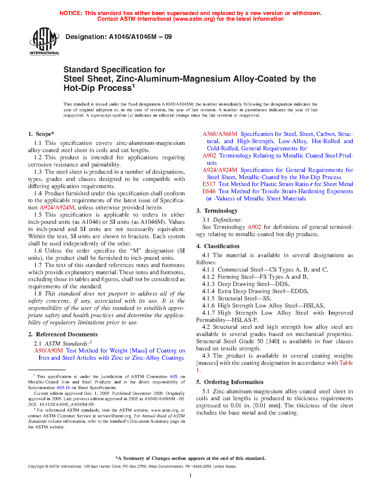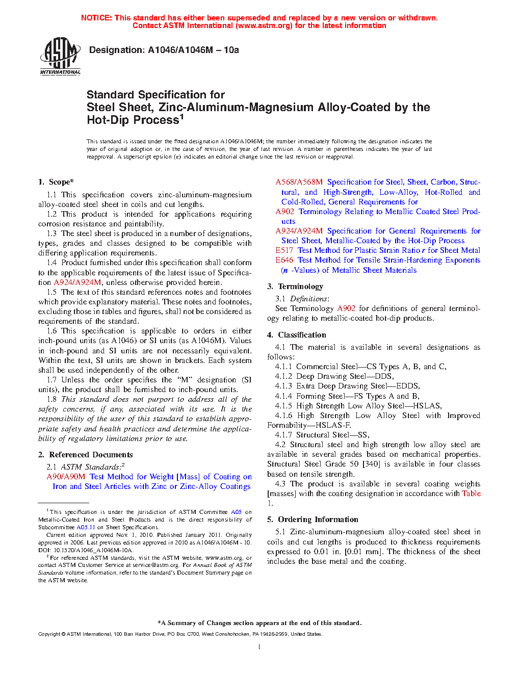 1.1 This specification covers zinc-aluminum-magnesium alloy-coated steel sheet in coils and cut lengths.