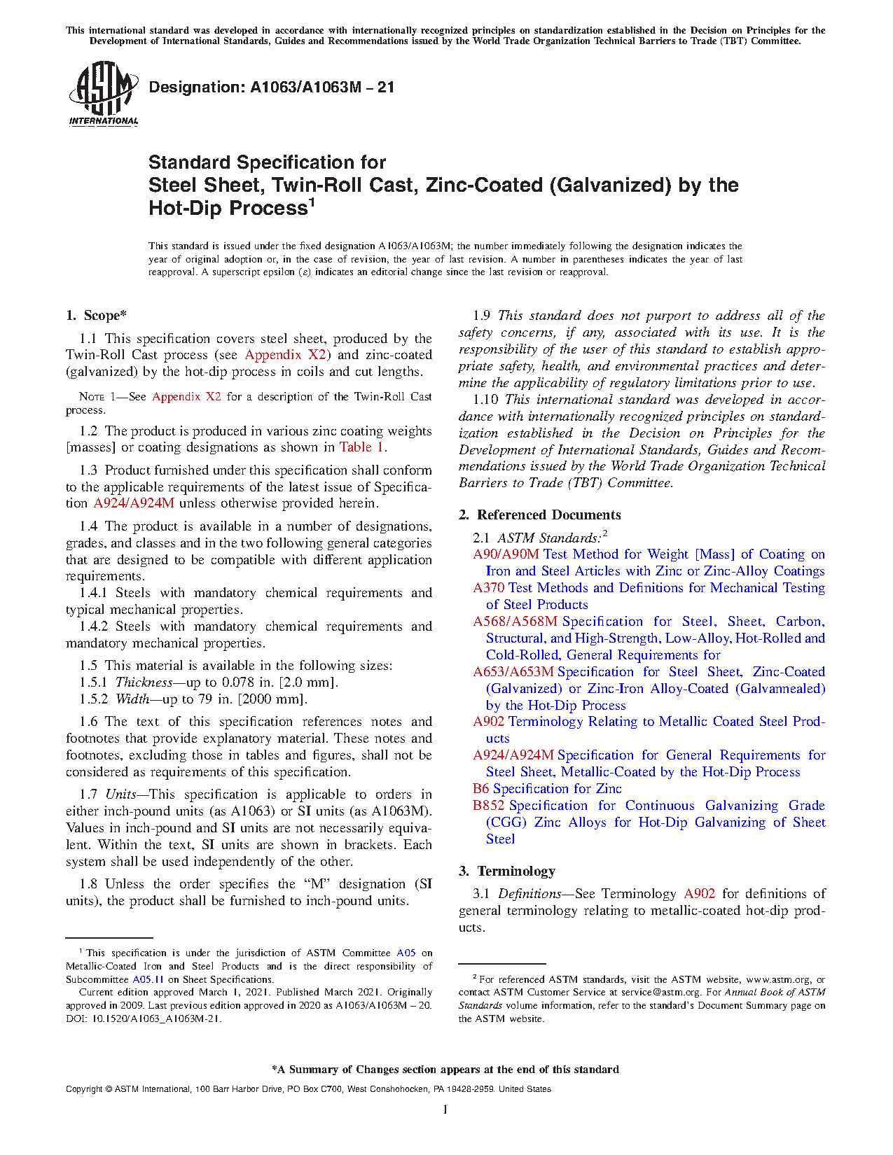 1.1 This specification covers steel sheet, produced by the Twin-Roll Cast Process (see Appendix X2) and zinc-coated (galvanized) by the hot-dip process in coils and cut lengths.