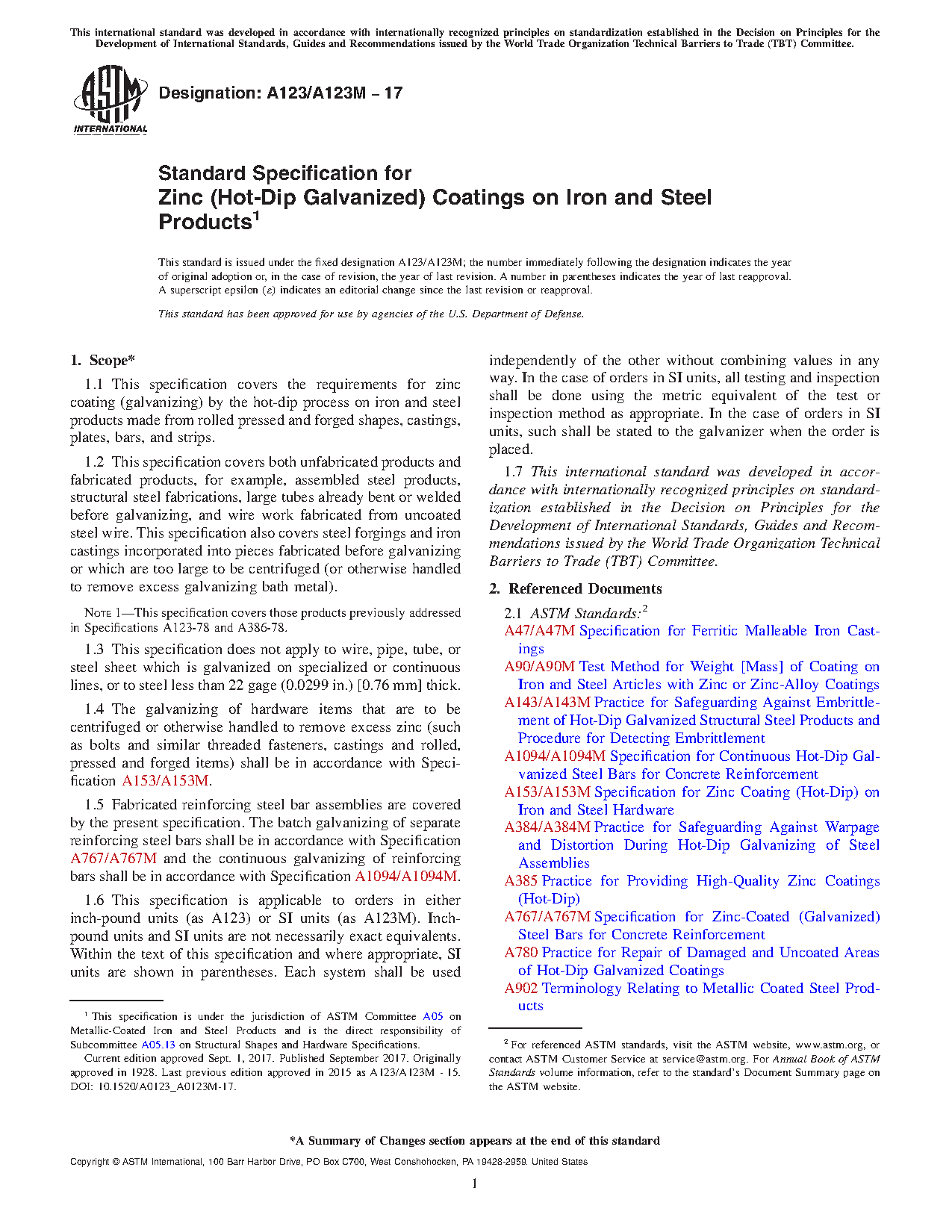 Note 1: This specification covers those products previously addressed in Specifications A123-78 and A386-78.