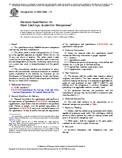 1.1 This specification covers Hadfield austenitic manganese steel castings and alloy modifications.