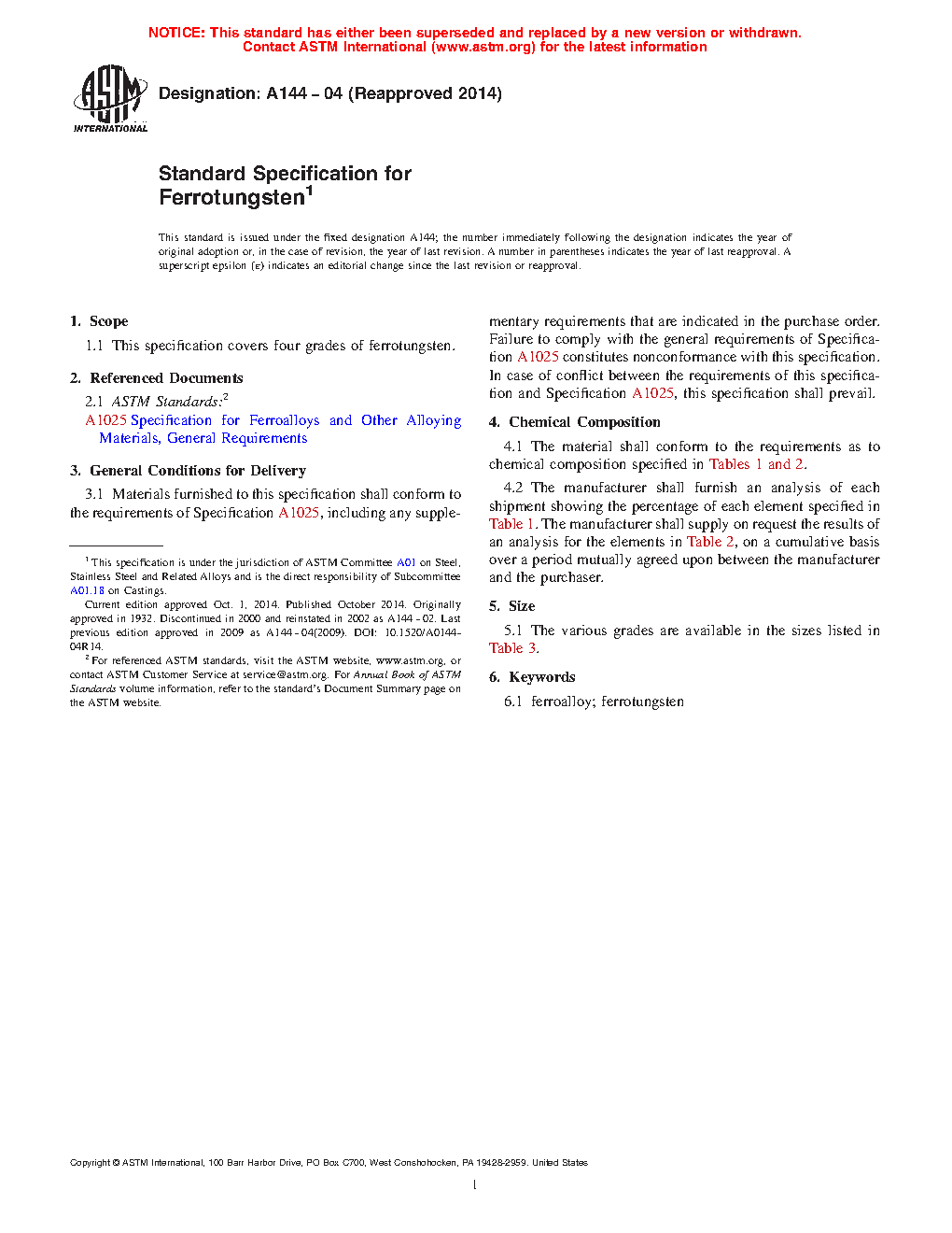 1.1 This specification covers four grades of ferrotungsten.