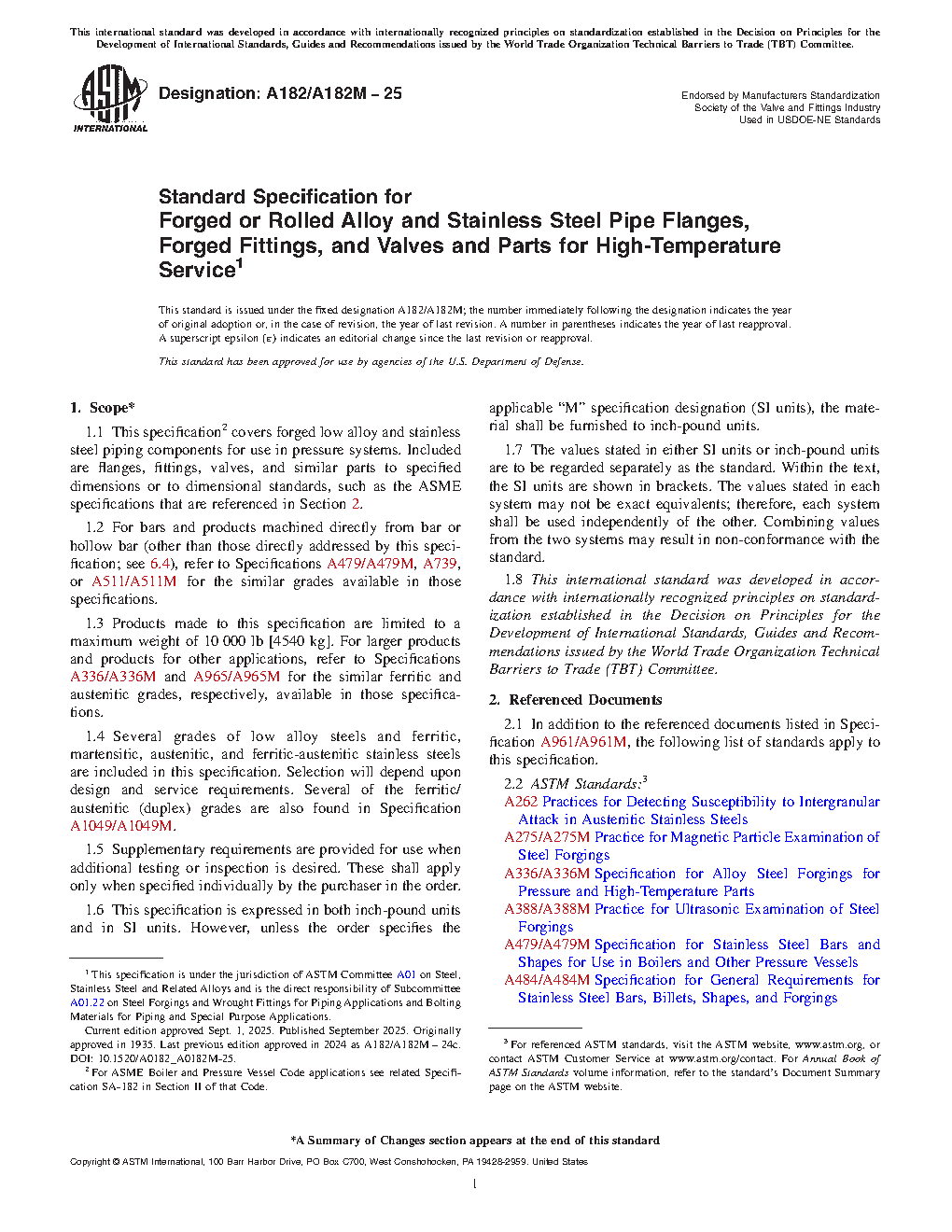 ASTM A182/A182M-25