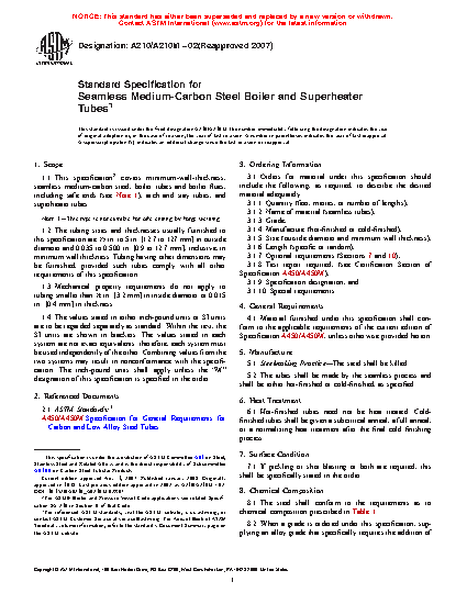 1.4 This specification covers grades A-1 and C of Seamless Medium-Carbon Boiler and Superheater Tubes with different chemical and tensile requirements. (Table 1, Table 3, and Section 11.)
