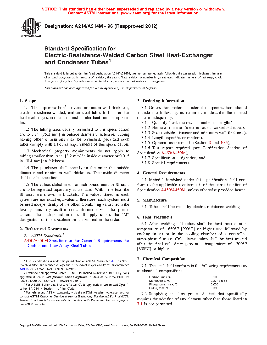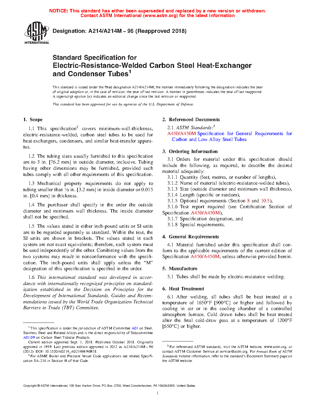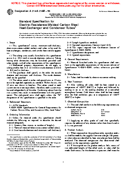 1.1 This specification2 covers minimum-wall-thickness, electric-resistance-welded, carbon steel tubes to be used for heat exchangers, condensers, and similar heat-transfer apparatus.
