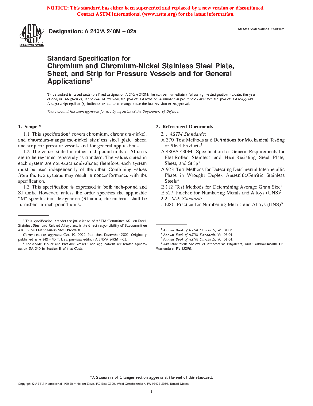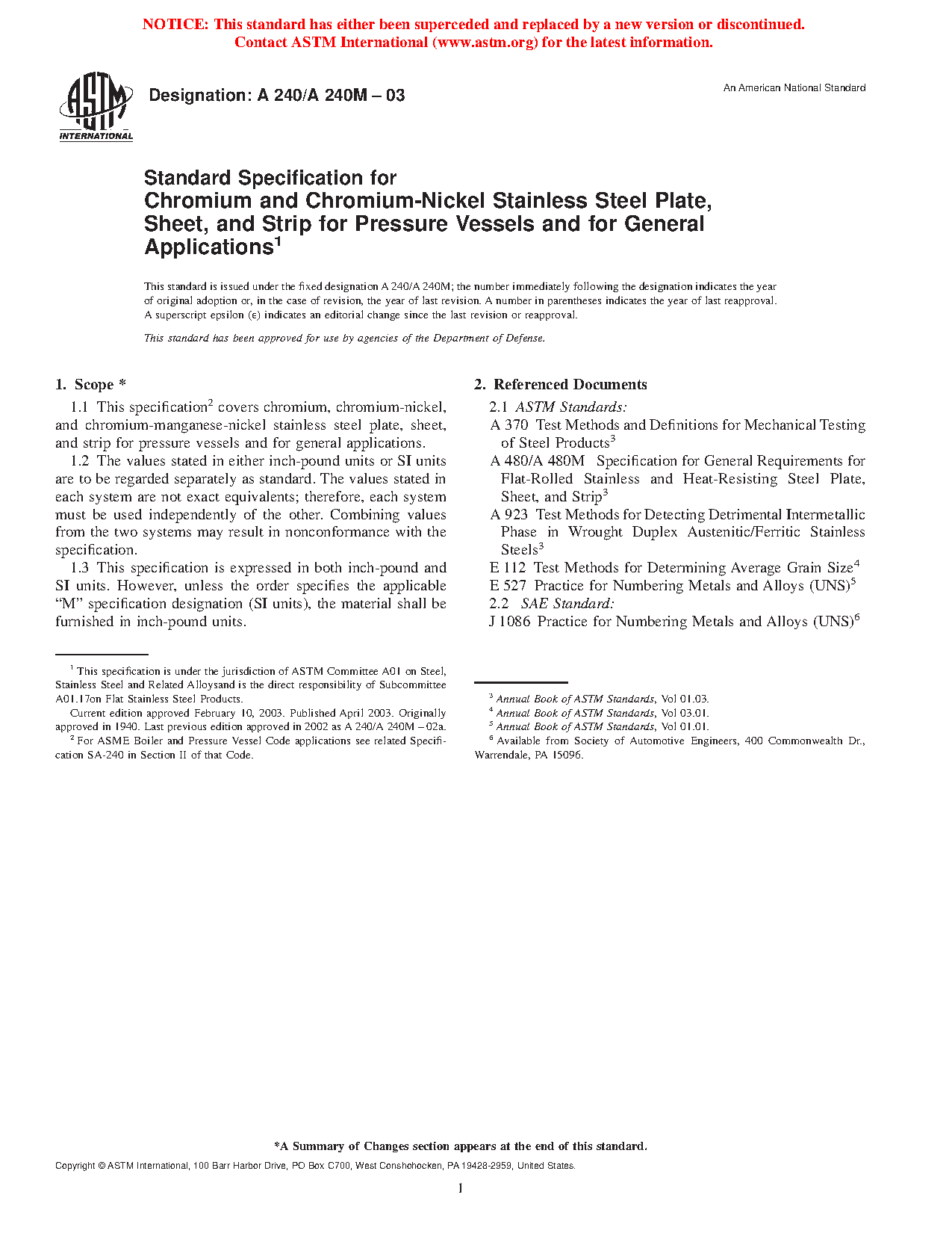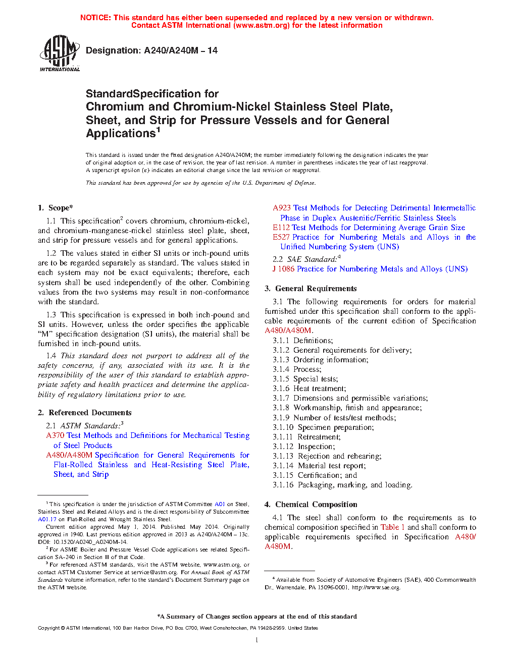 1.1 This specification2 covers chromium, chromium-nickel, and chromium-manganese-nickel stainless steel plate, sheet, and strip for pressure vessels and for general applications including architectural, building, construction, and aesthetic applications.