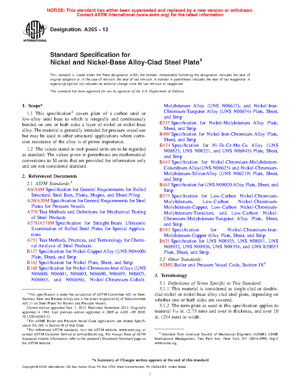 Standard Specification for Nickel and Nickel-Base Alloy-Clad Steel Plate
