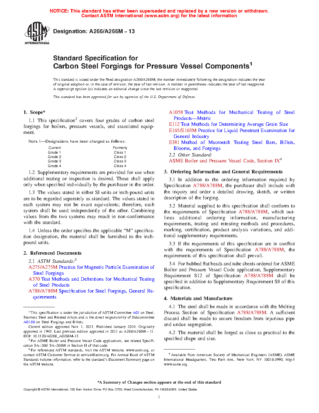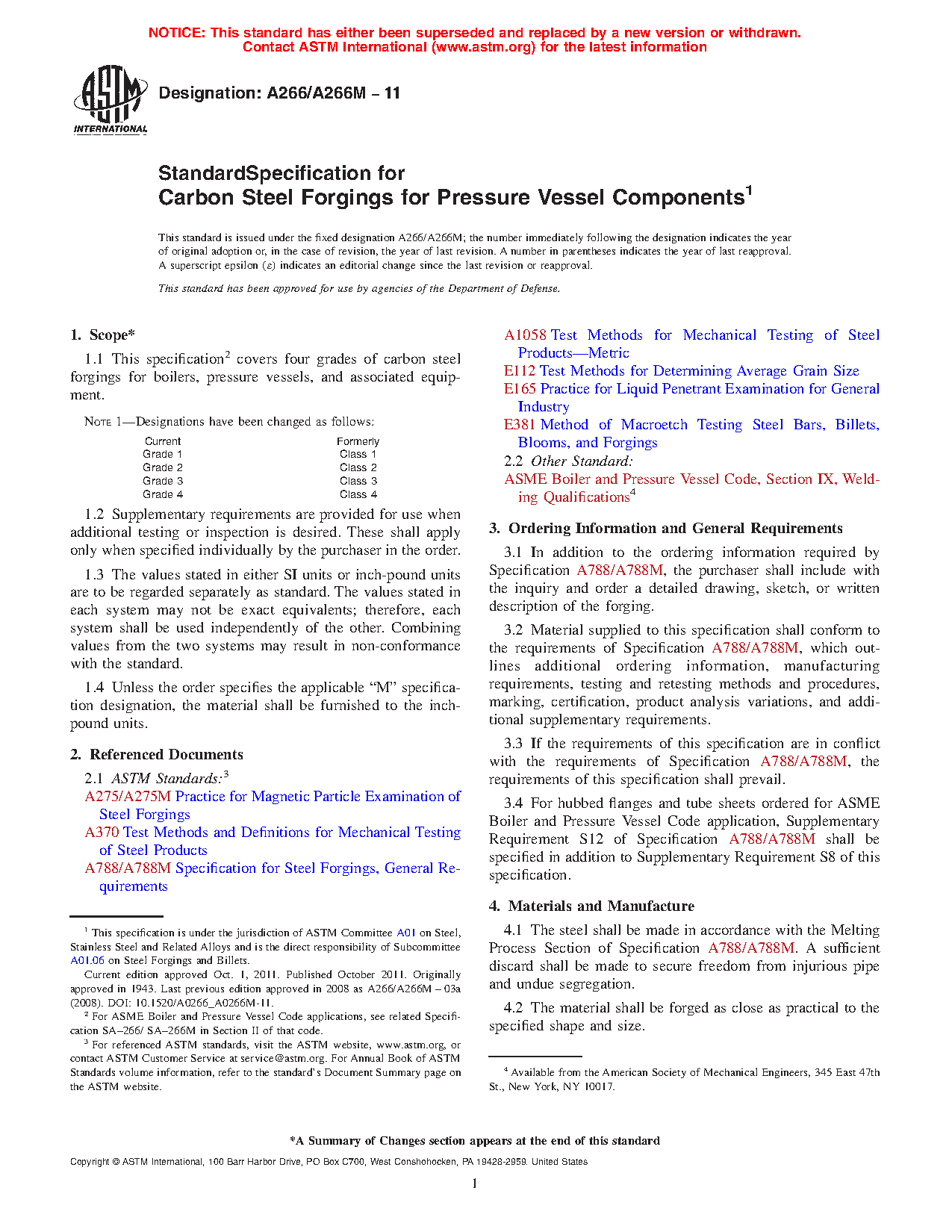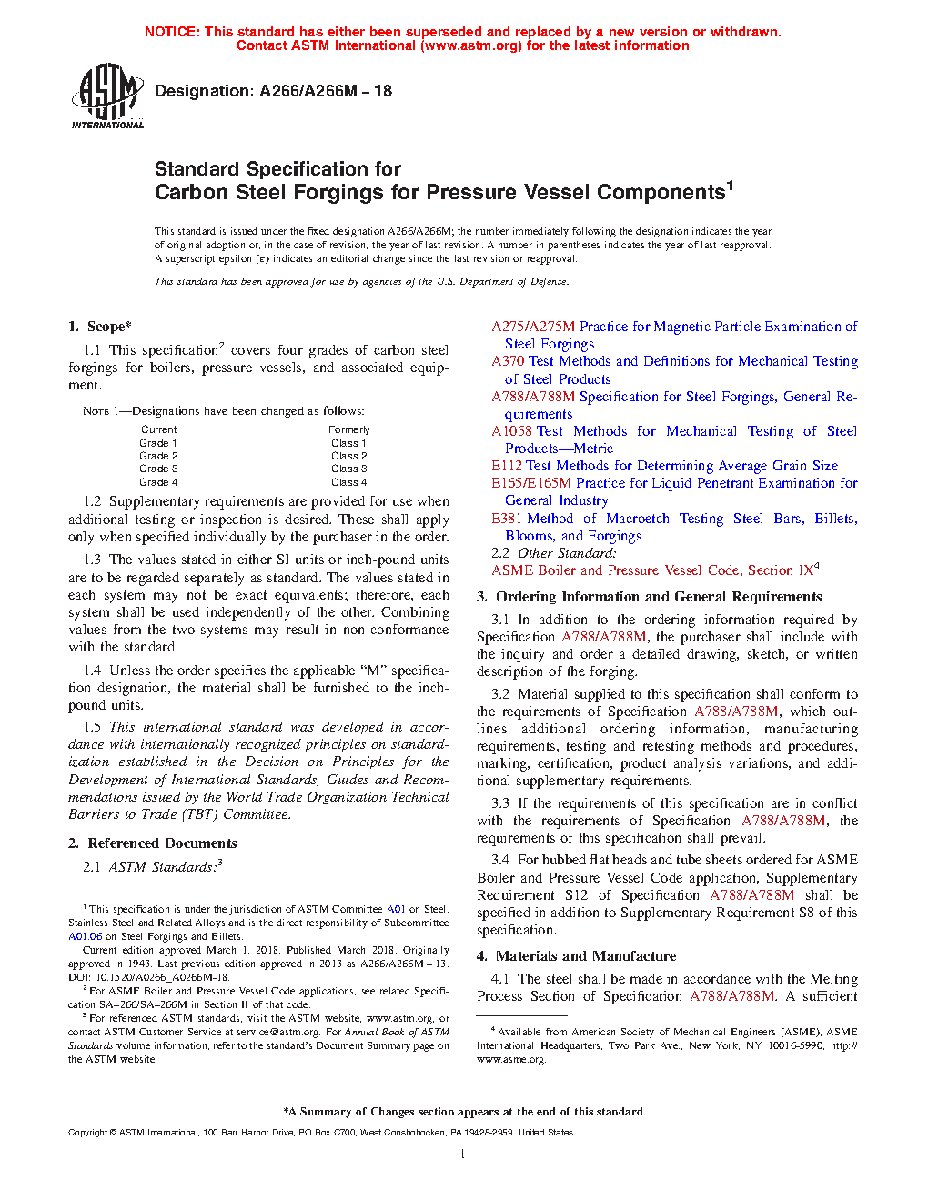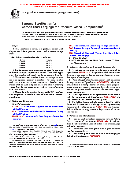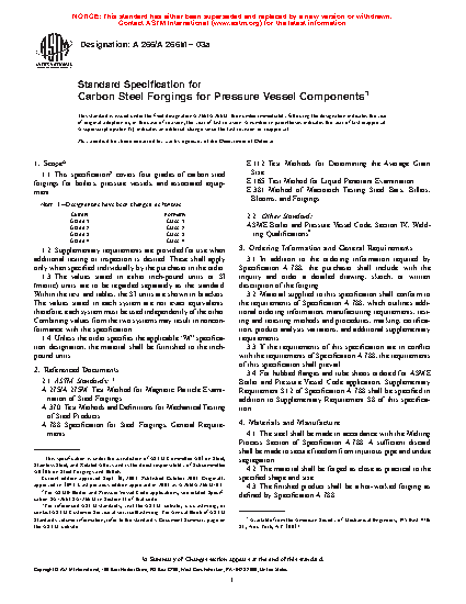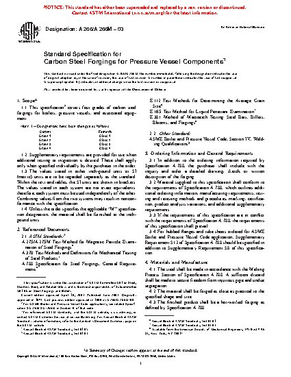 1.1 This specification2 covers four grades of carbon steel forgings for boilers, pressure vessels, and associated equipment.
