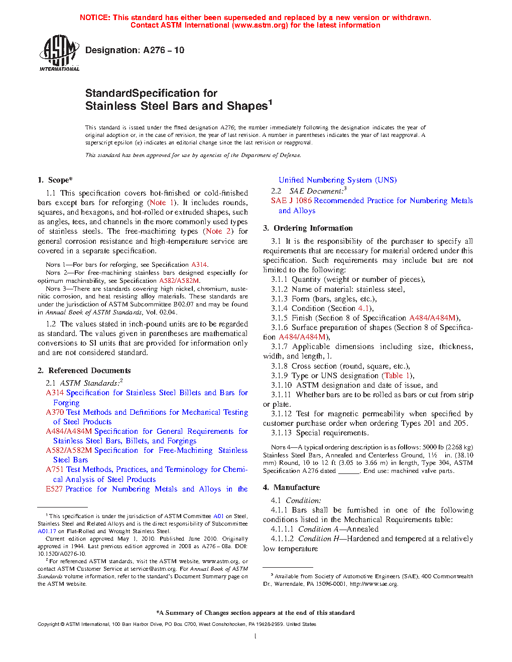 Note 2—For free-machining stainless bars designed especially for optimum machinability, see Specification A 582/A 582M.