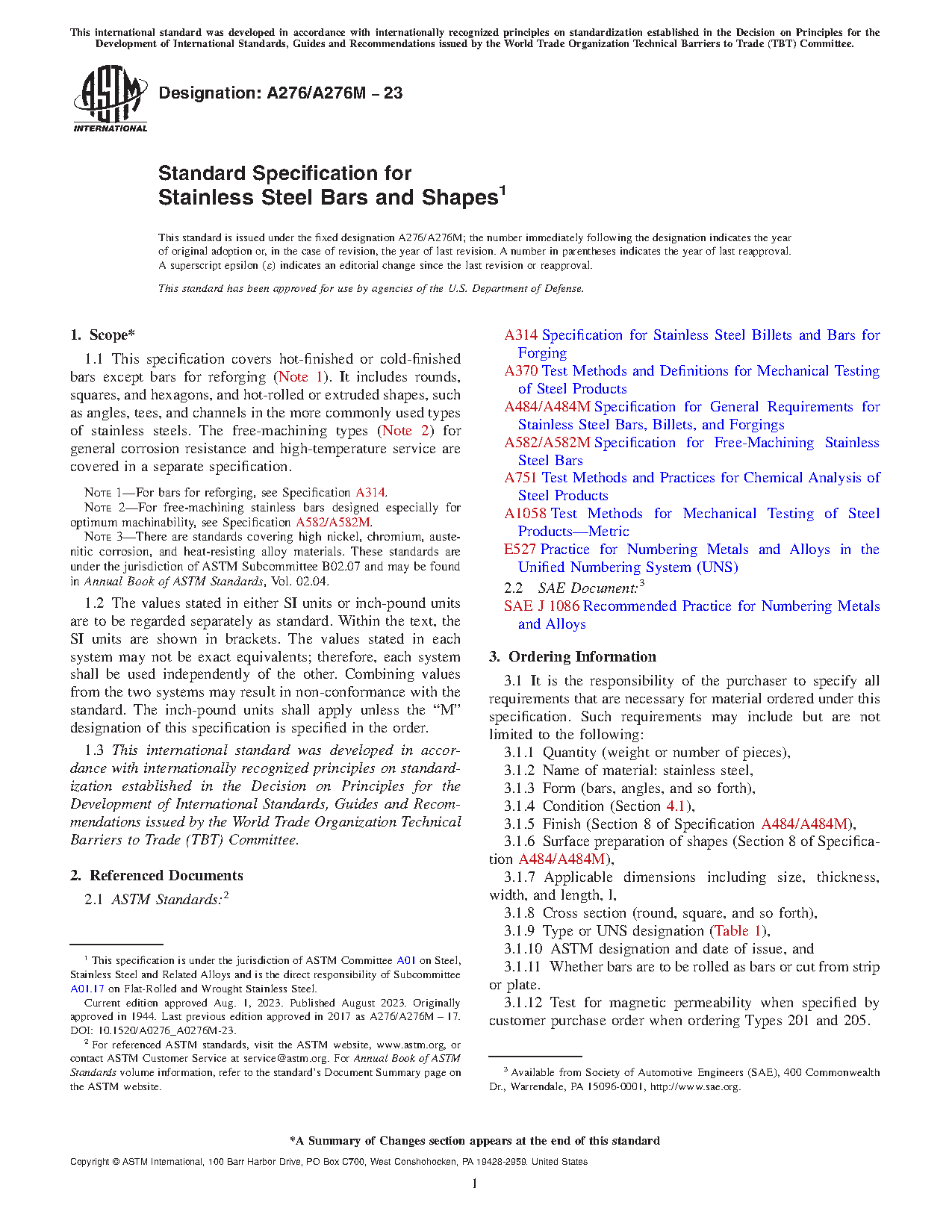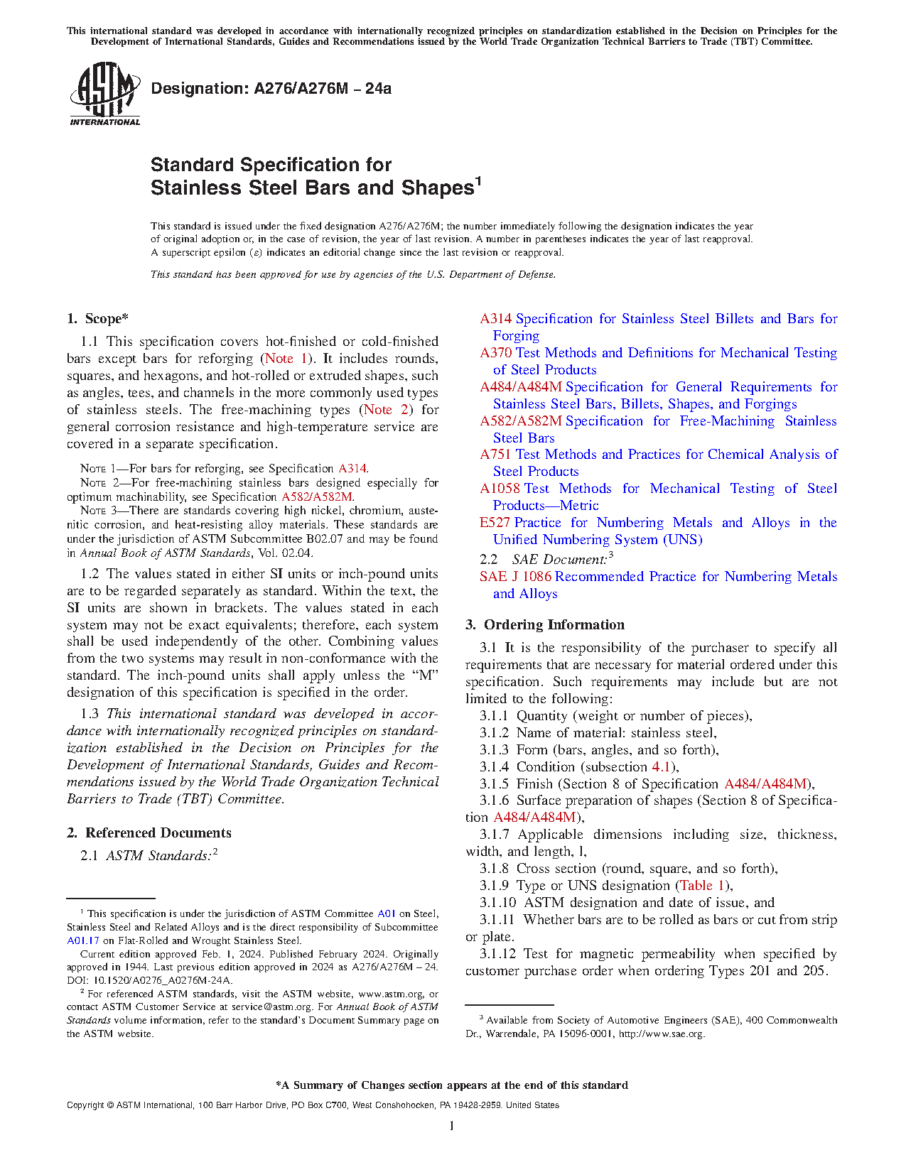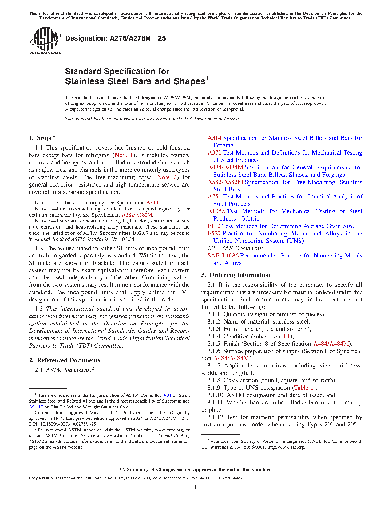 ASTM A276/A276M-25