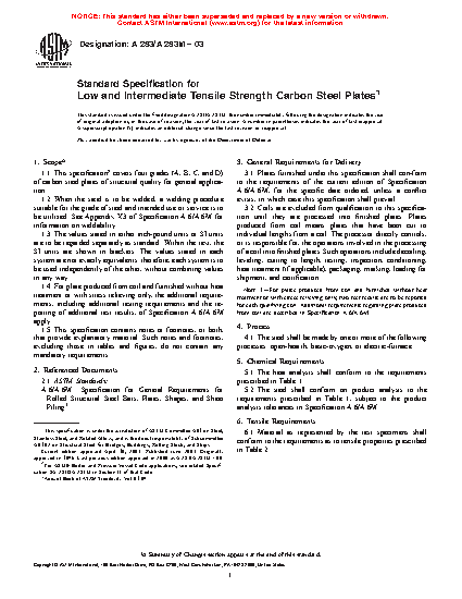 Standard Specification for Low and Intermediate Tensile Strength Carbon Steel Plates