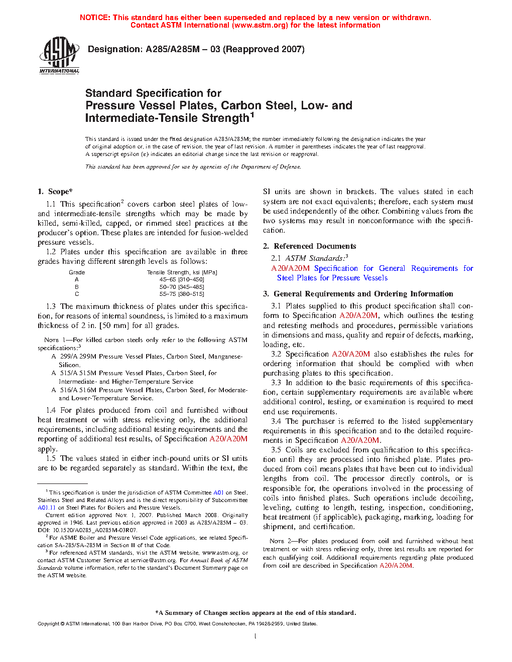 Note 1: For killed carbon steels only, refer to the following ASTM specifications:3