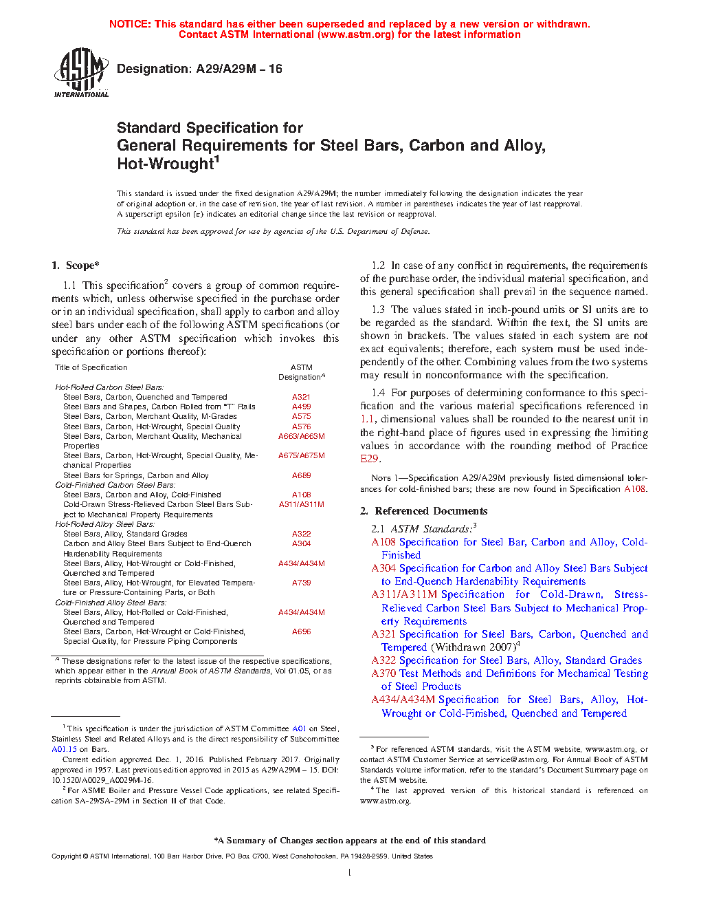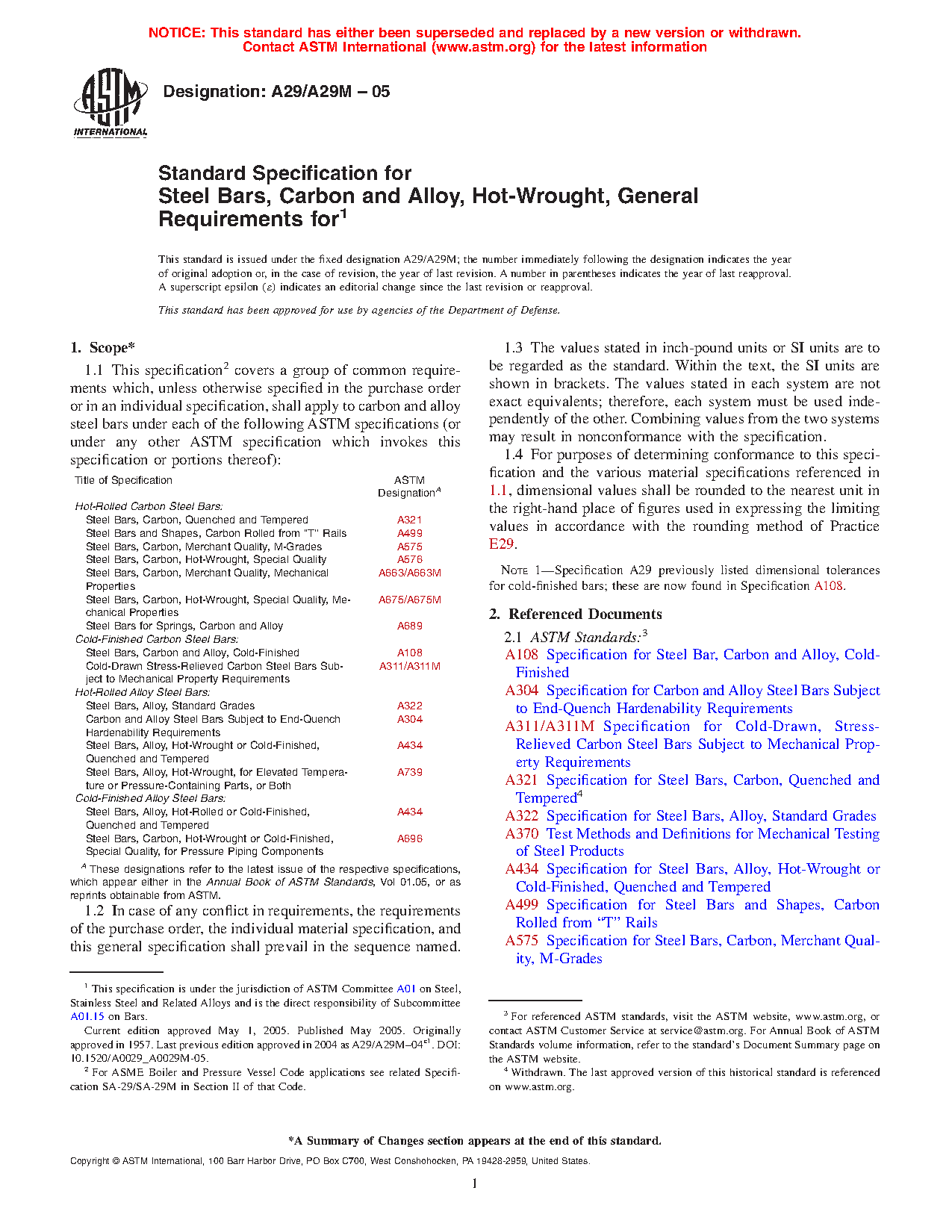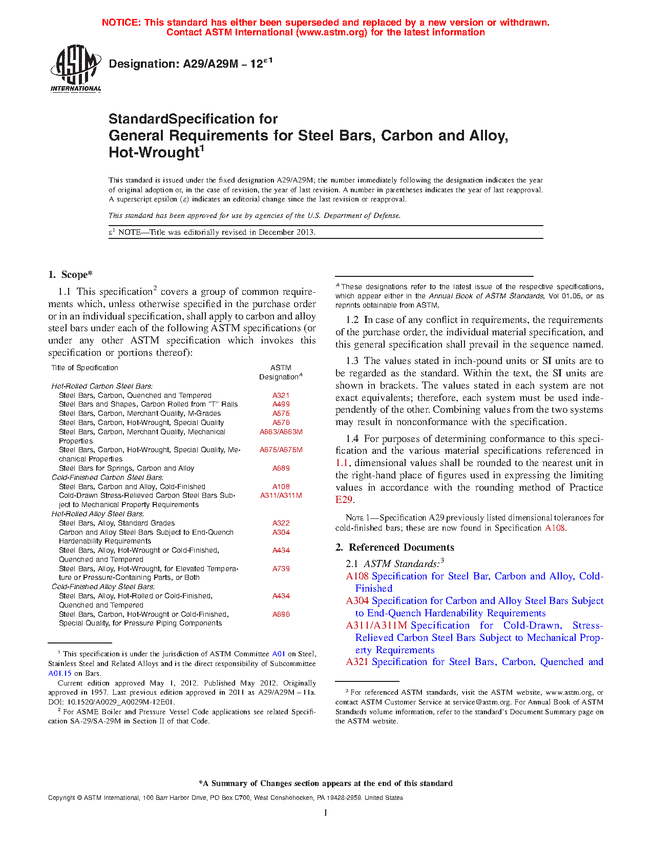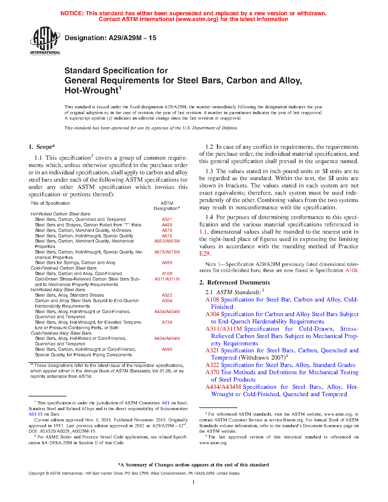 Note 1: Specification A29/A29M previously listed dimensional tolerances for cold-finished bars; these are now found in Specification A108.