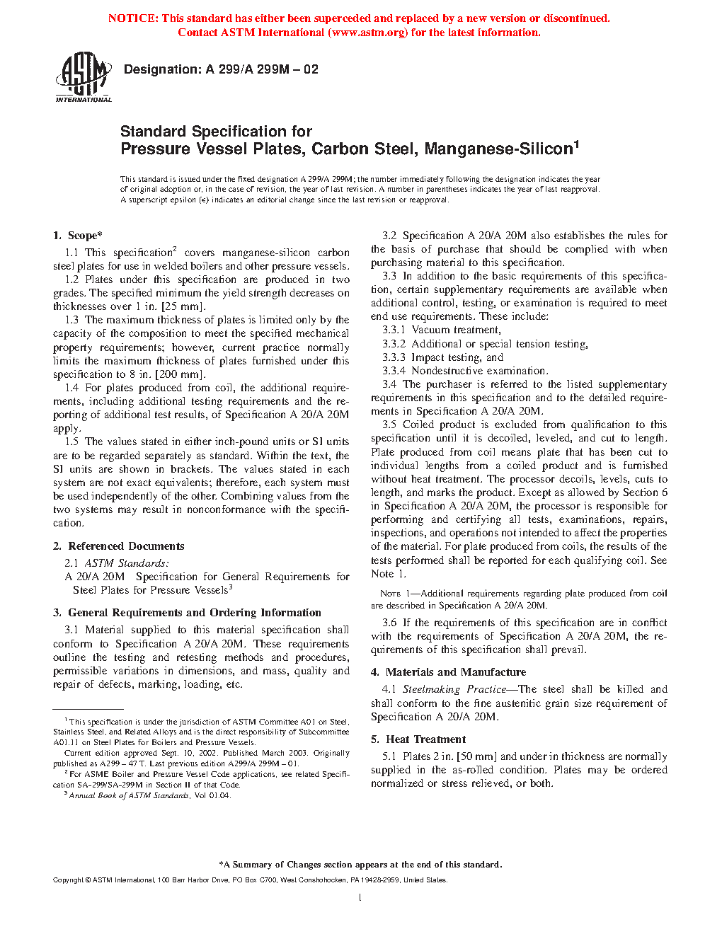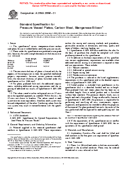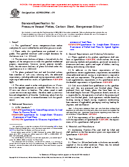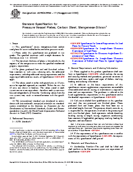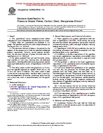 1.1 This specification2 covers manganese-silicon carbon steel plates for use in welded boilers and other pressure vessels.