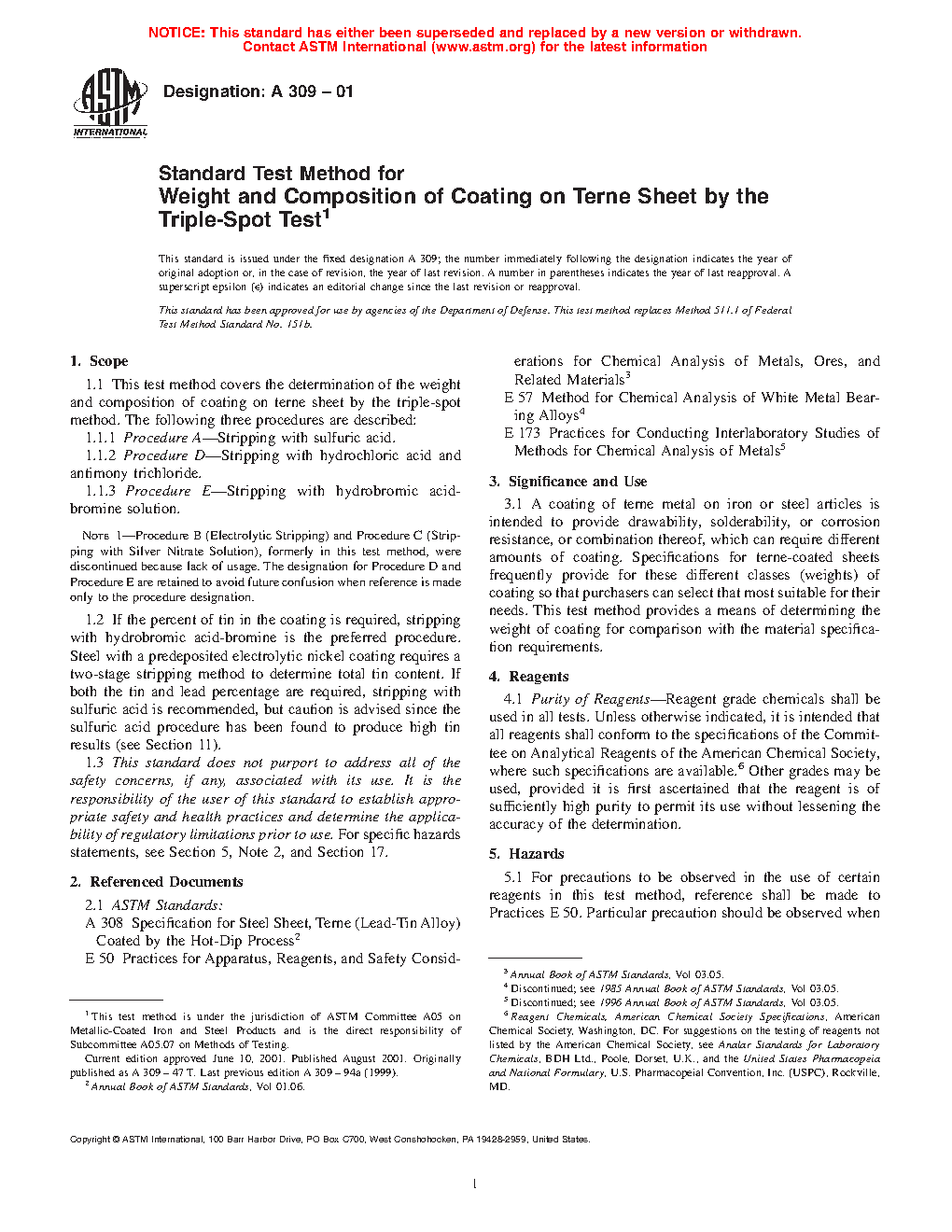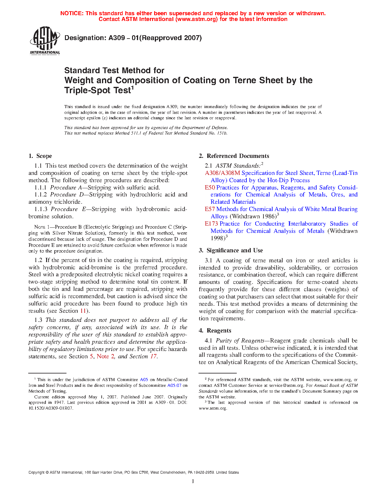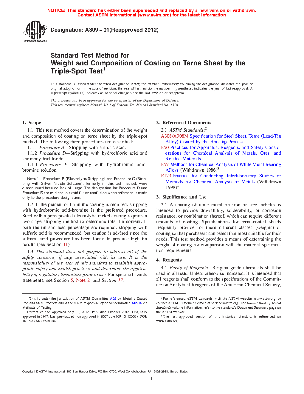1.1 This test method covers the determination of the weight and composition of coating on terne sheet by the triple-spot method. The following three procedures are described:
