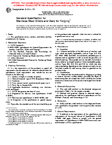 1.1 This specification covers stainless steel billets and bars intended only for forging.