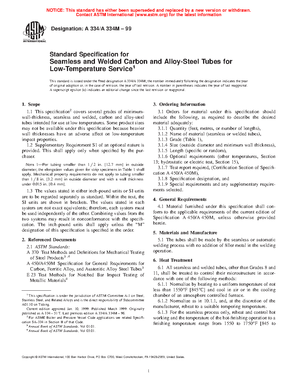 1.1 This specification2 covers several grades of minimum-wall-thickness, seamless and welded, carbon and alloy-steel tubes intended for use at low temperatures. Some product sizes may not be available under this specification because heavier wall thicknesses have an adverse affect on low-temperature impact properties.