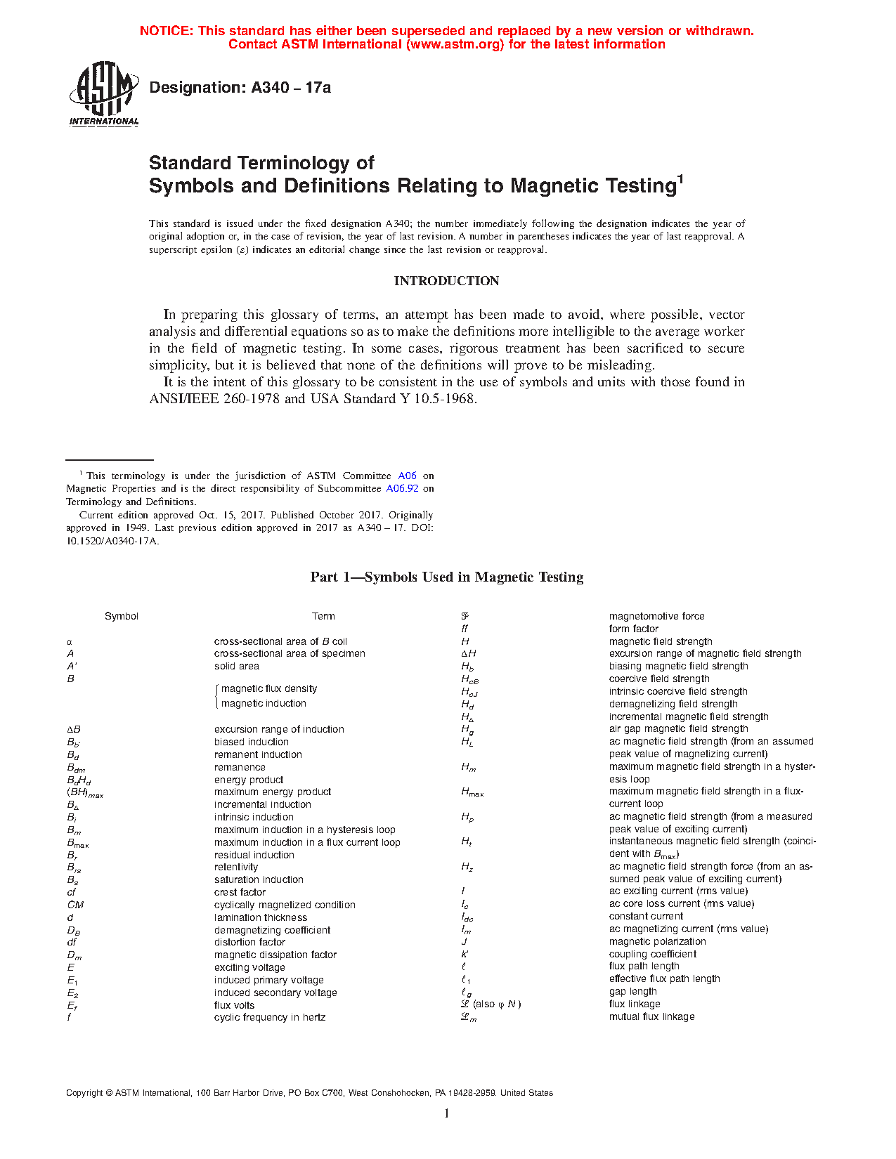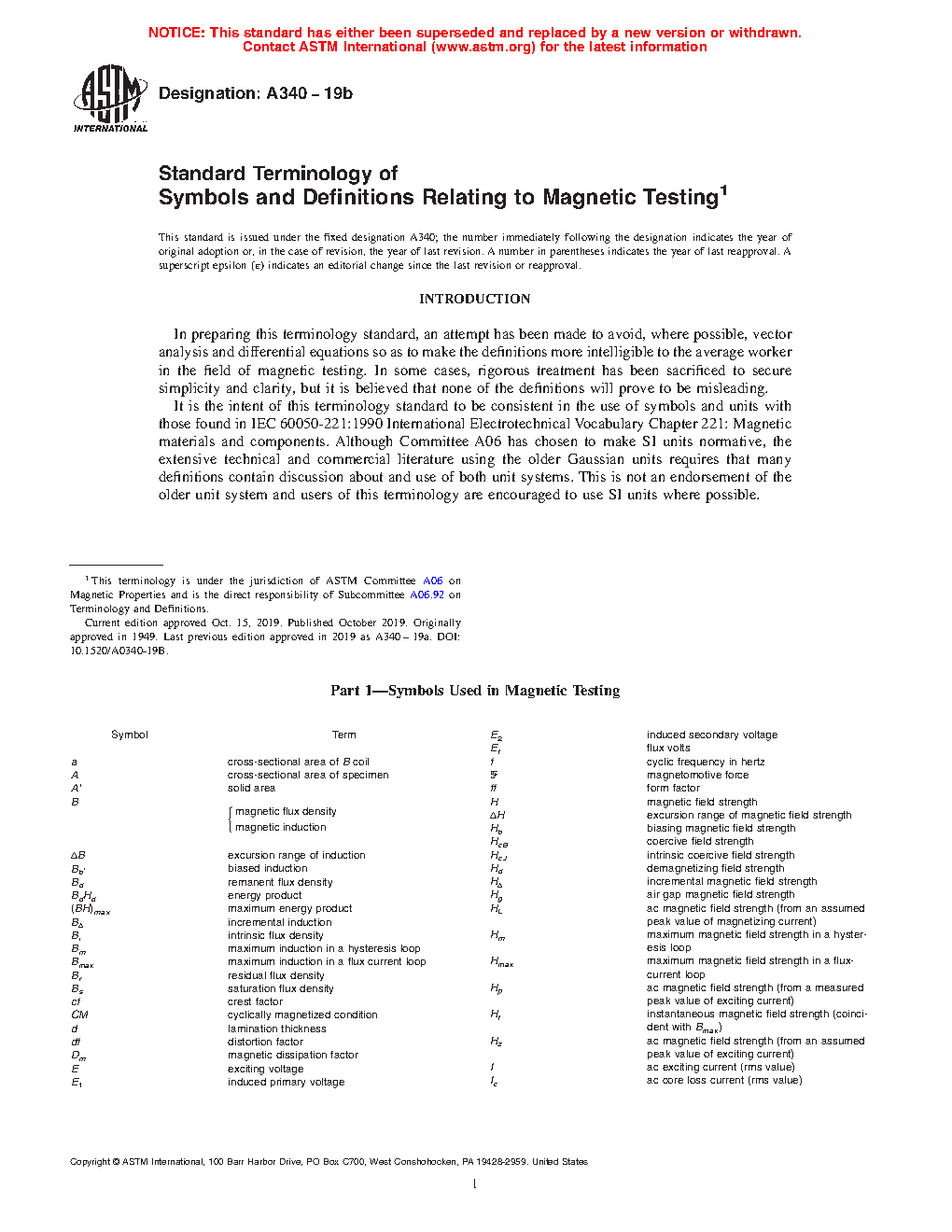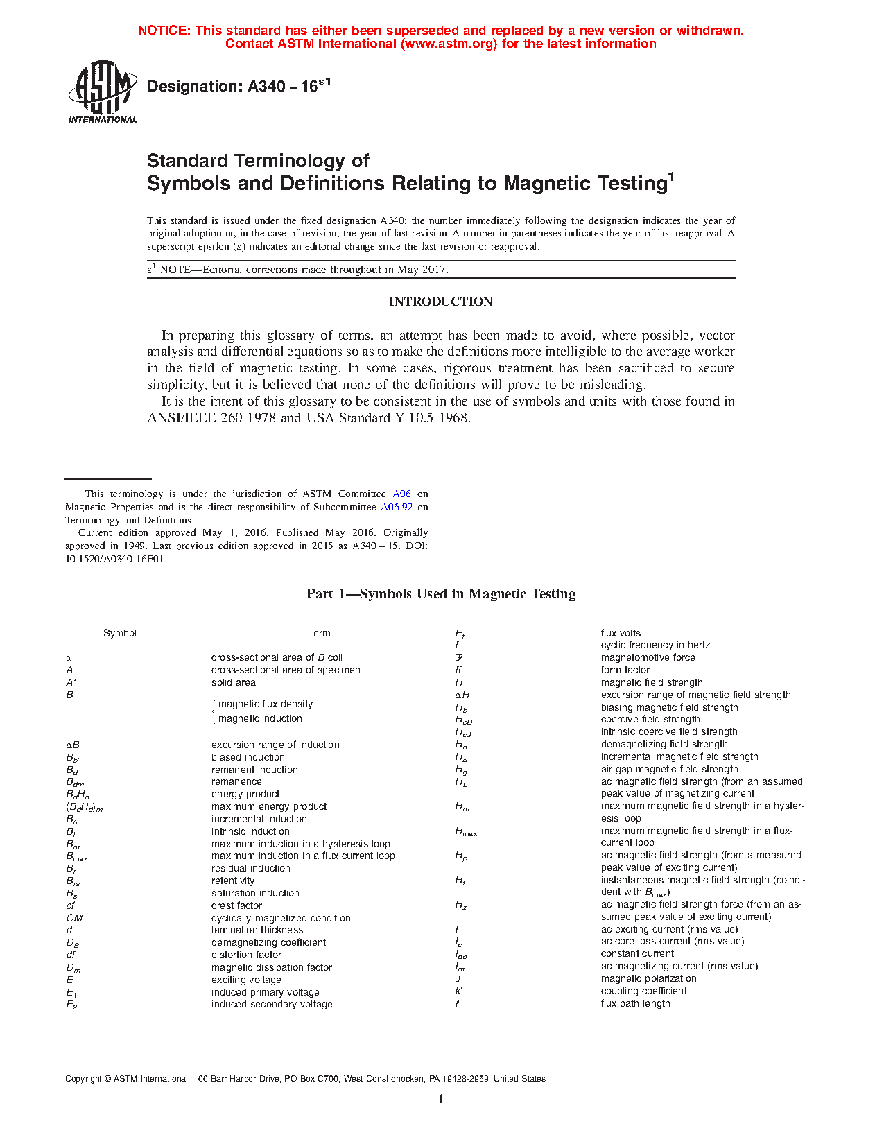 Standard Terminology of Symbols and Definitions Relating to Magnetic Testing
