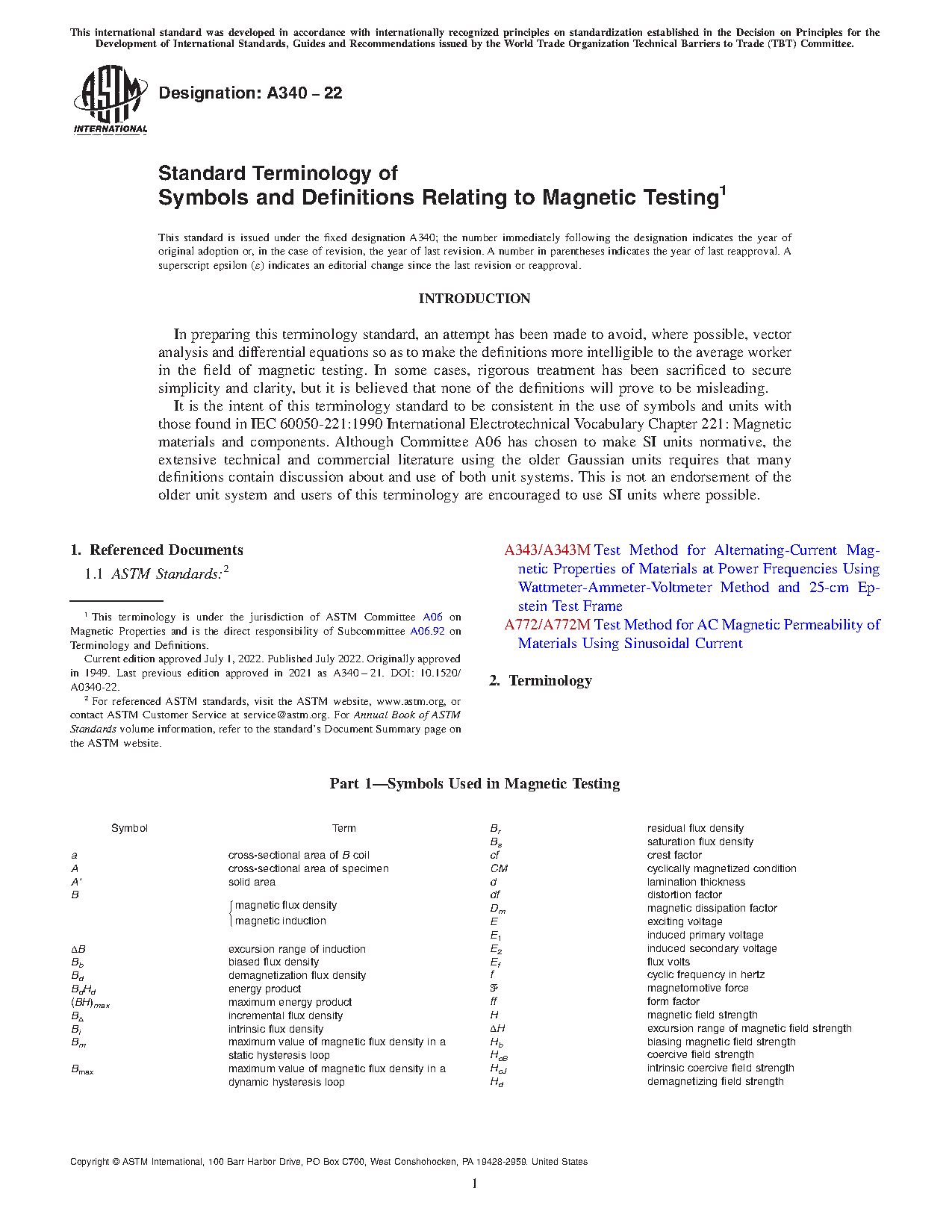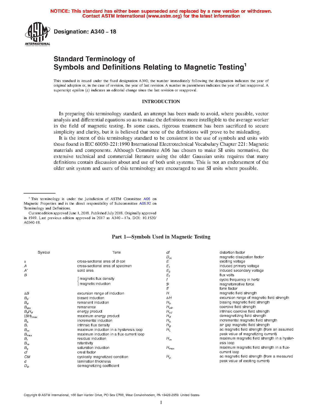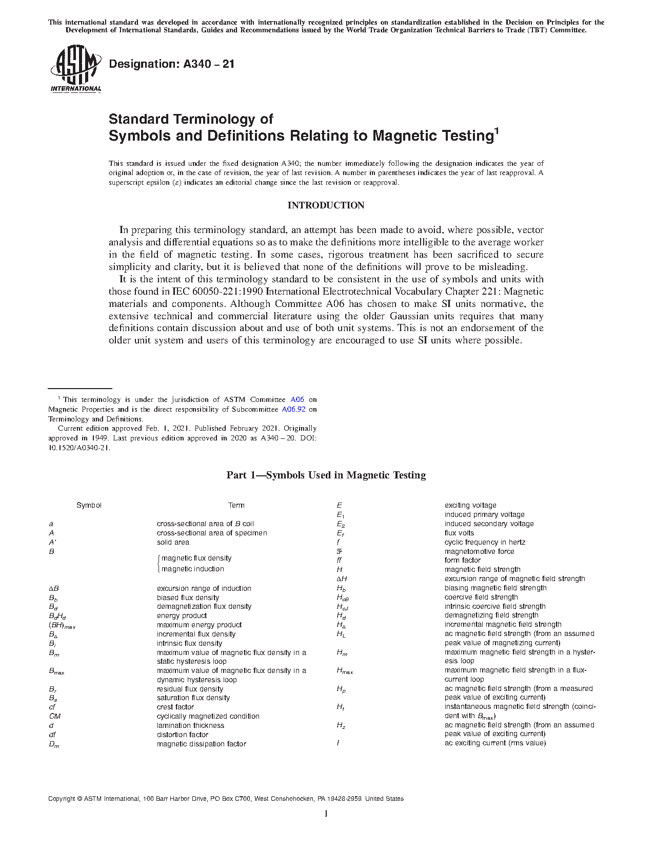 Standard Terminology of Symbols and Definitions Relating to Magnetic Testing