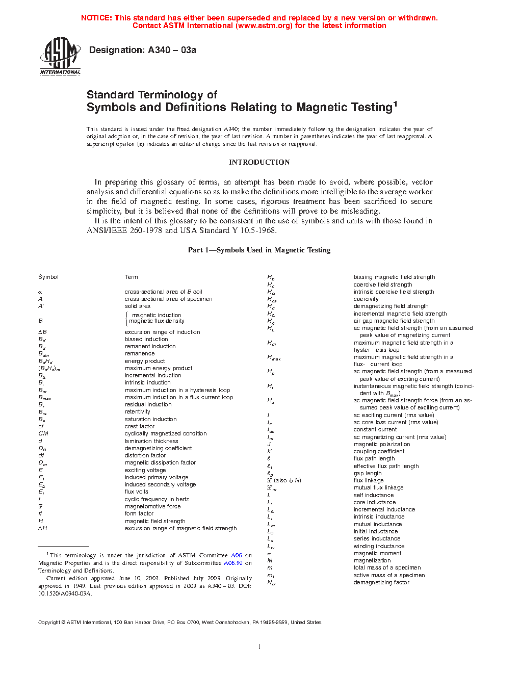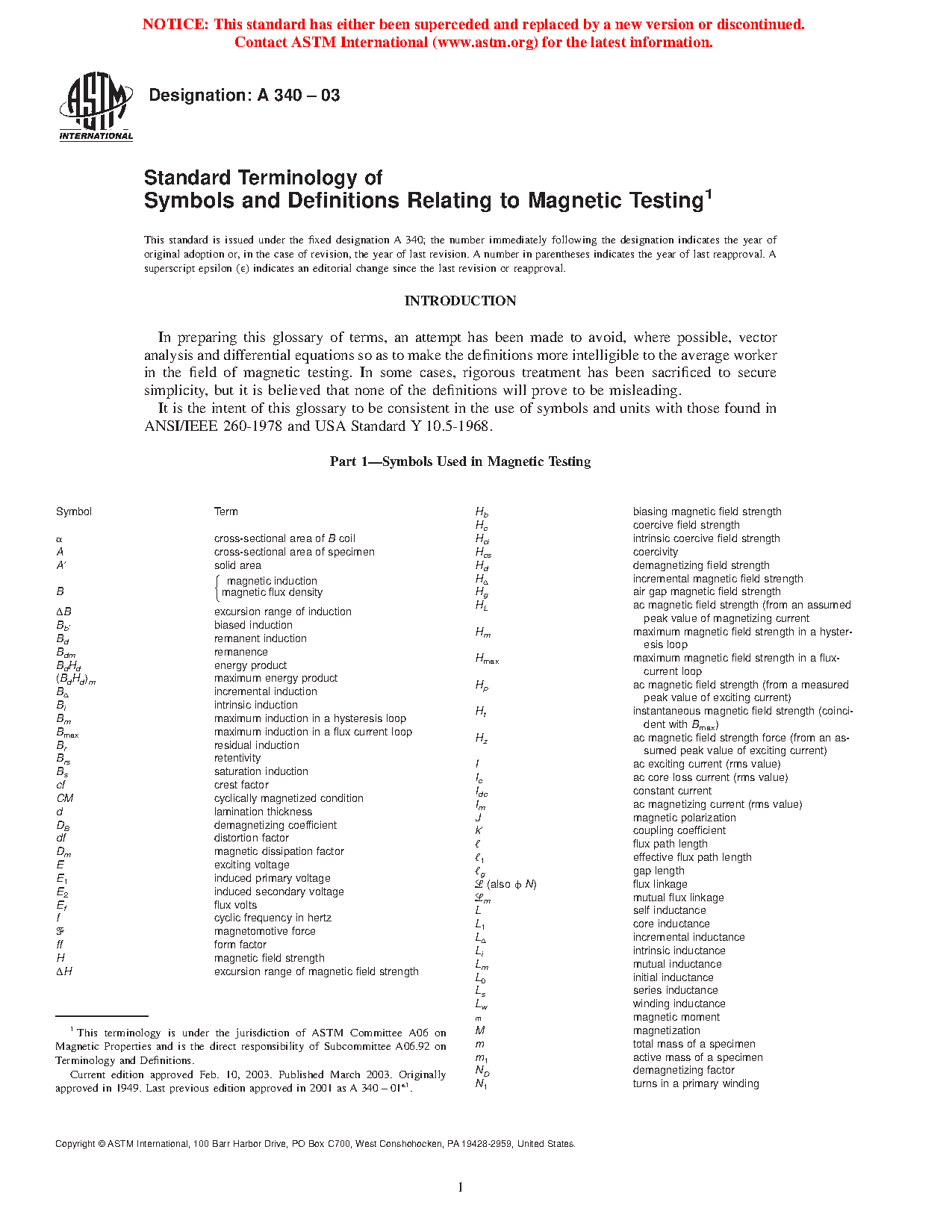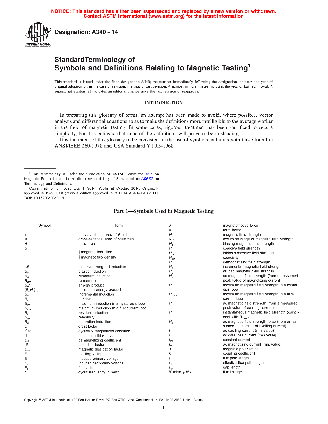 Standard Terminology of Symbols and Definitions Relating to Magnetic Testing